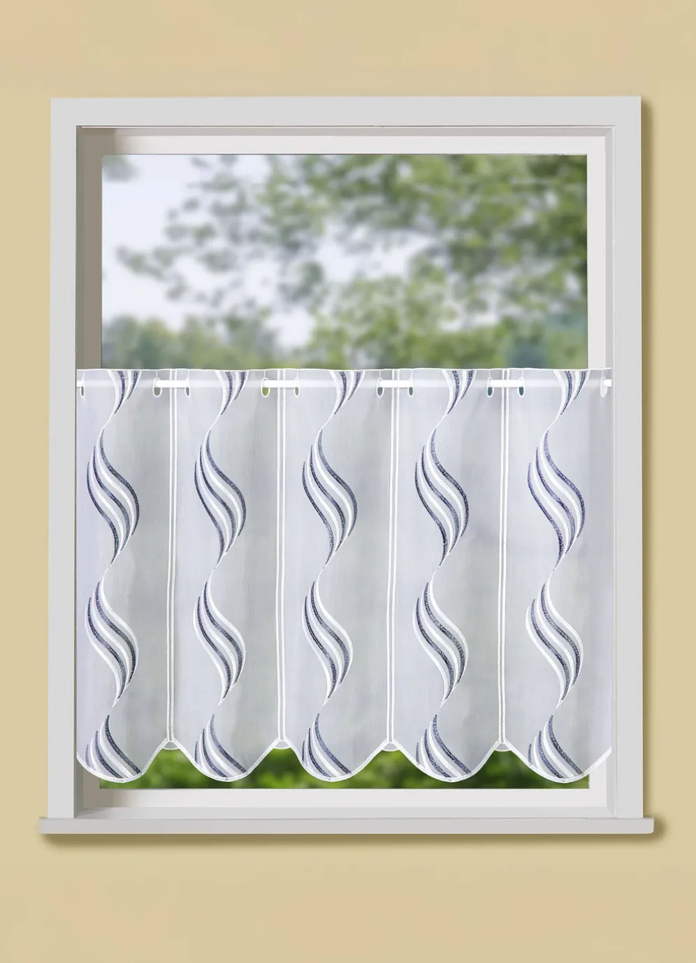 Kurzstore mit Stickerei in Größe 661 (H30xB 95 cm) und in Weiss-Blau.