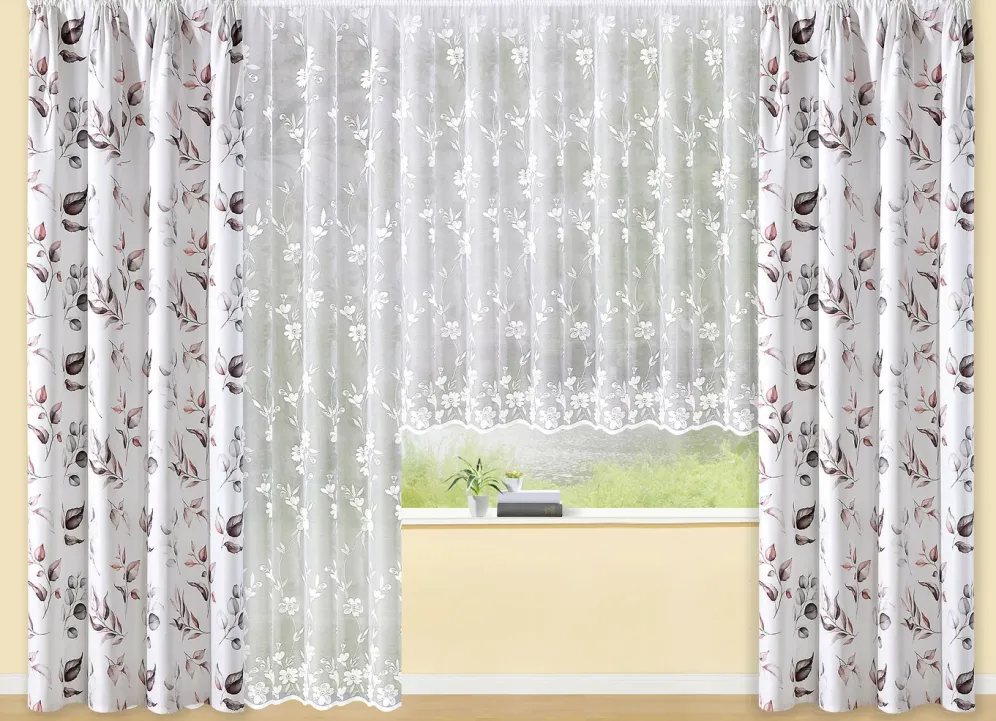 Einen wunderbar blumigen Ausblick beschert Ihnen dieser floral dessinierte Langstore mit Universalschienenband! Unten ausgebogt und seitlich gesäumt. Die Qualität: Jacquard aus 100% Polyester.