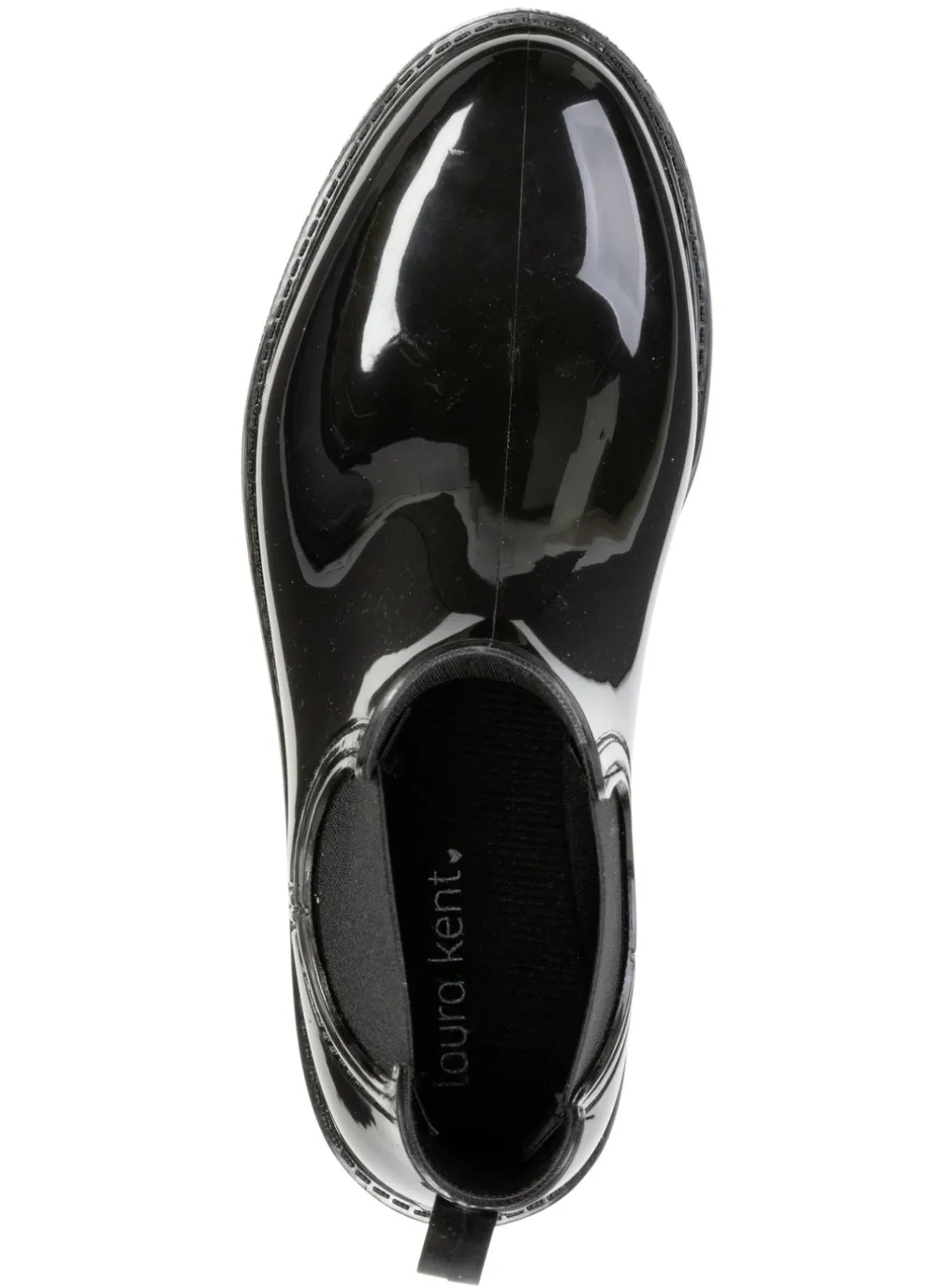 LAURA KENT, trendige Regenstiefeletten, mit herausnembarer Textileinlage in Schwarz und in Größe 39.