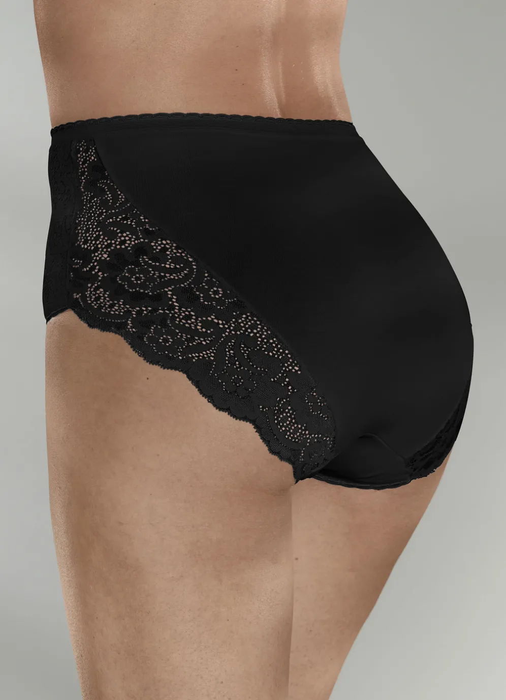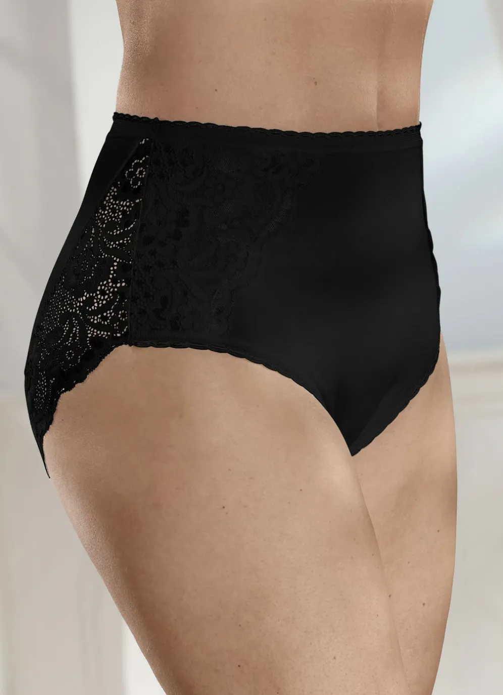 „Laurina“-Slip mit Elastikspitze im Vorder- und Rückteil sowie elastischen Abschlüssen.