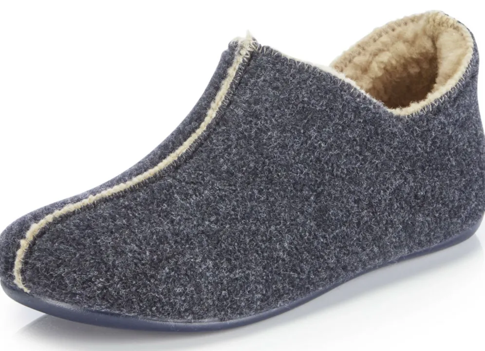 Kuscheliger „Laurina“-Filz-Hausschuh: Obermaterial, Warmfutter und herausnehmbares Fußbett aus recyceltem Polyester. Weite G, superleichte Gummi-Laufsohle sowie 10 mm Keilabsatz