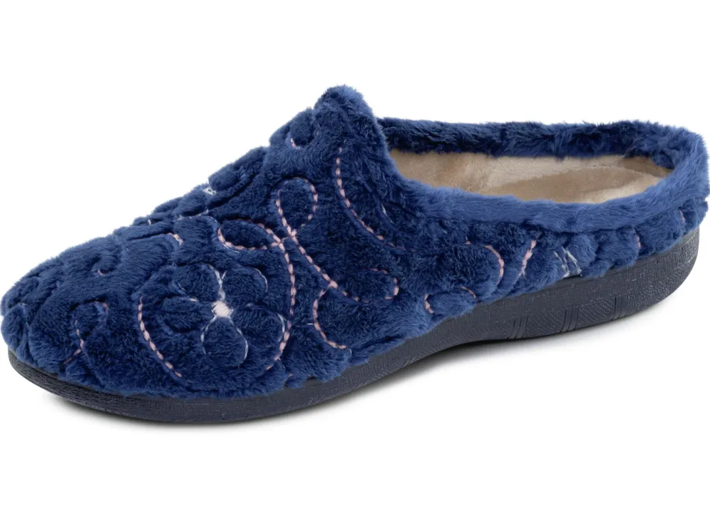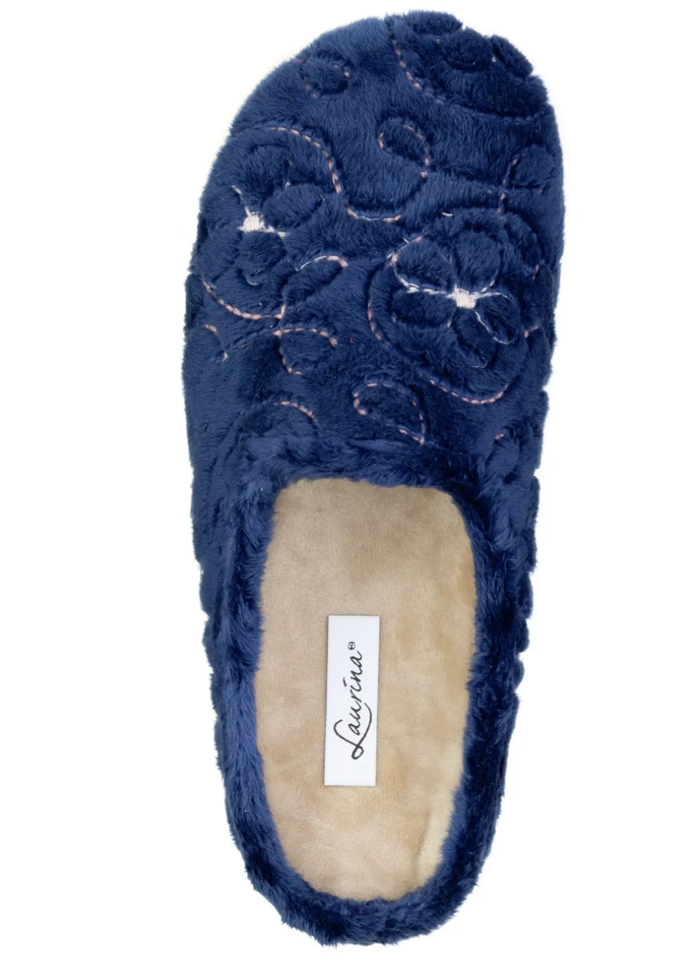 Laurina, gefütterte Damen-Hausschuhe, mit anatomisch geformtem Fußbett in Marine und in Größe 36.