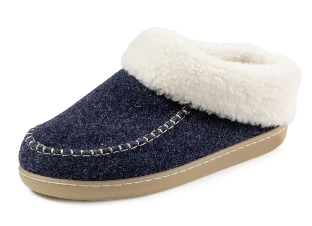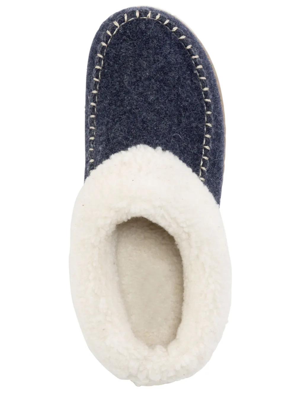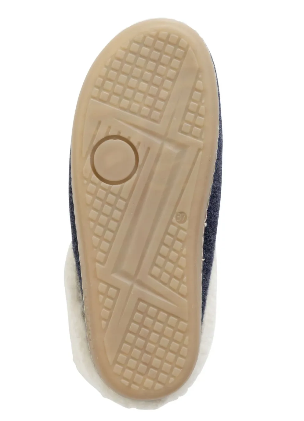 Laurina Hausschuh mit kuscheligem Plüschkragen in Marine und in Größe 40.