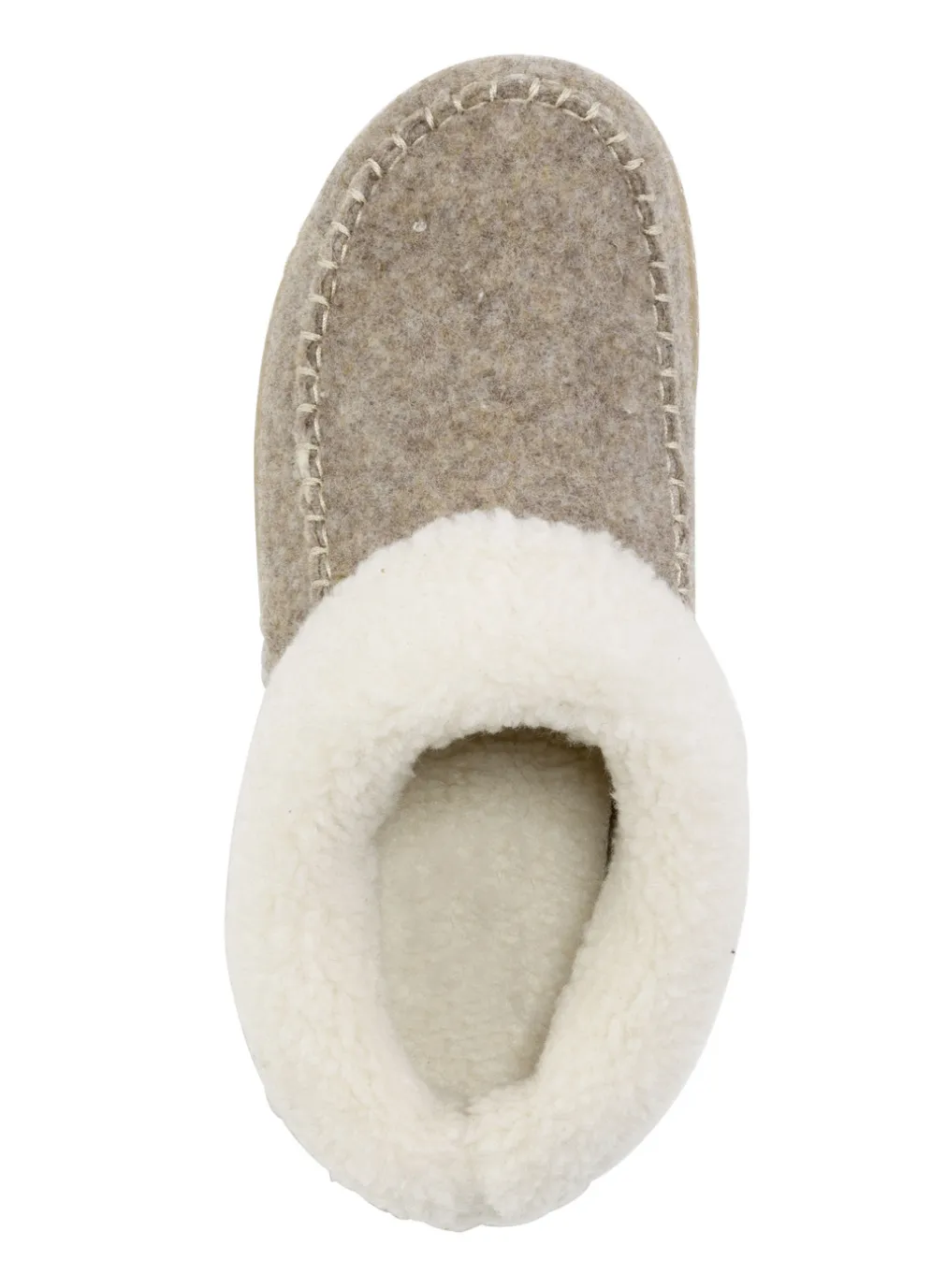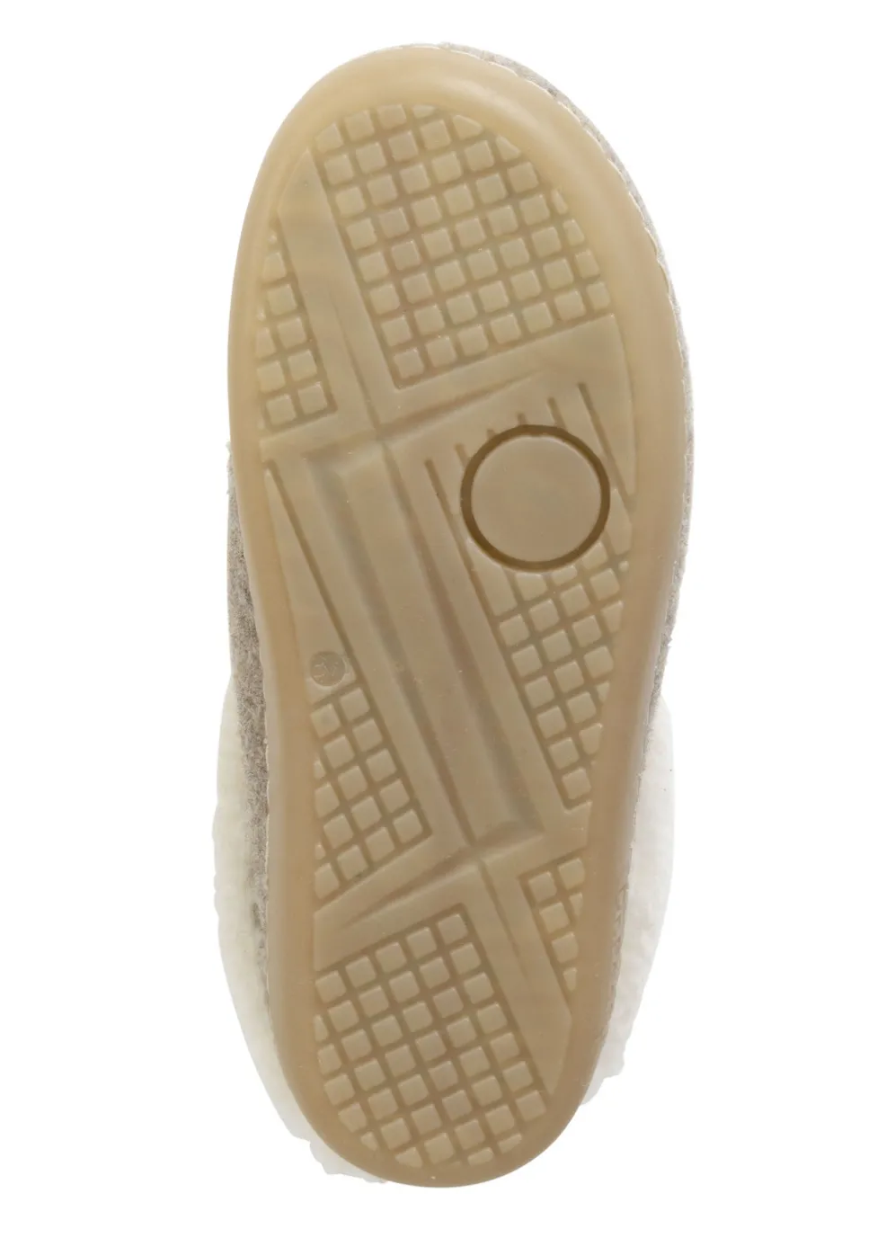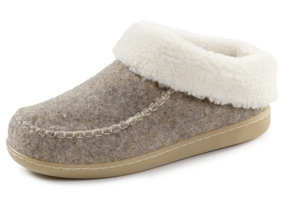 Gemütlicher „Laurina“-Hausschuh aus flauschigem Filz, mit kuscheligem Plüschkragen: Warmfutter und Wechselfußbett aus Polyester-Plüsch, superleichte, flache TR-Laufsohle