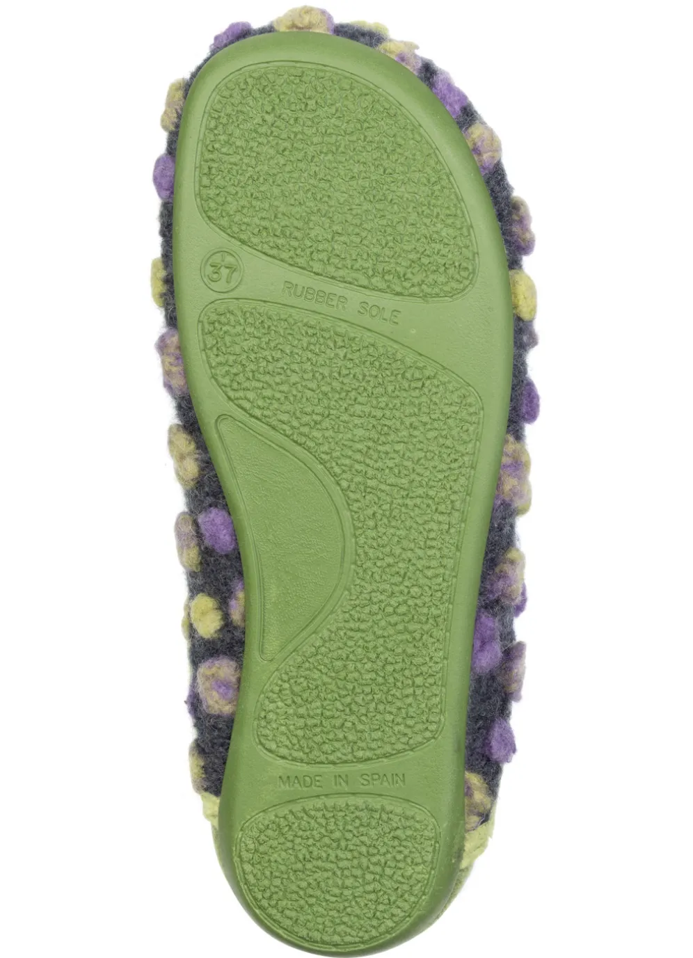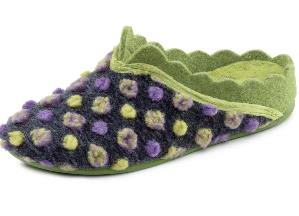 Laurina, klassische Damen-Hausschuhe, mit herausnehmbarem Fußbett in Grün-Bunt und in Größe 39.
