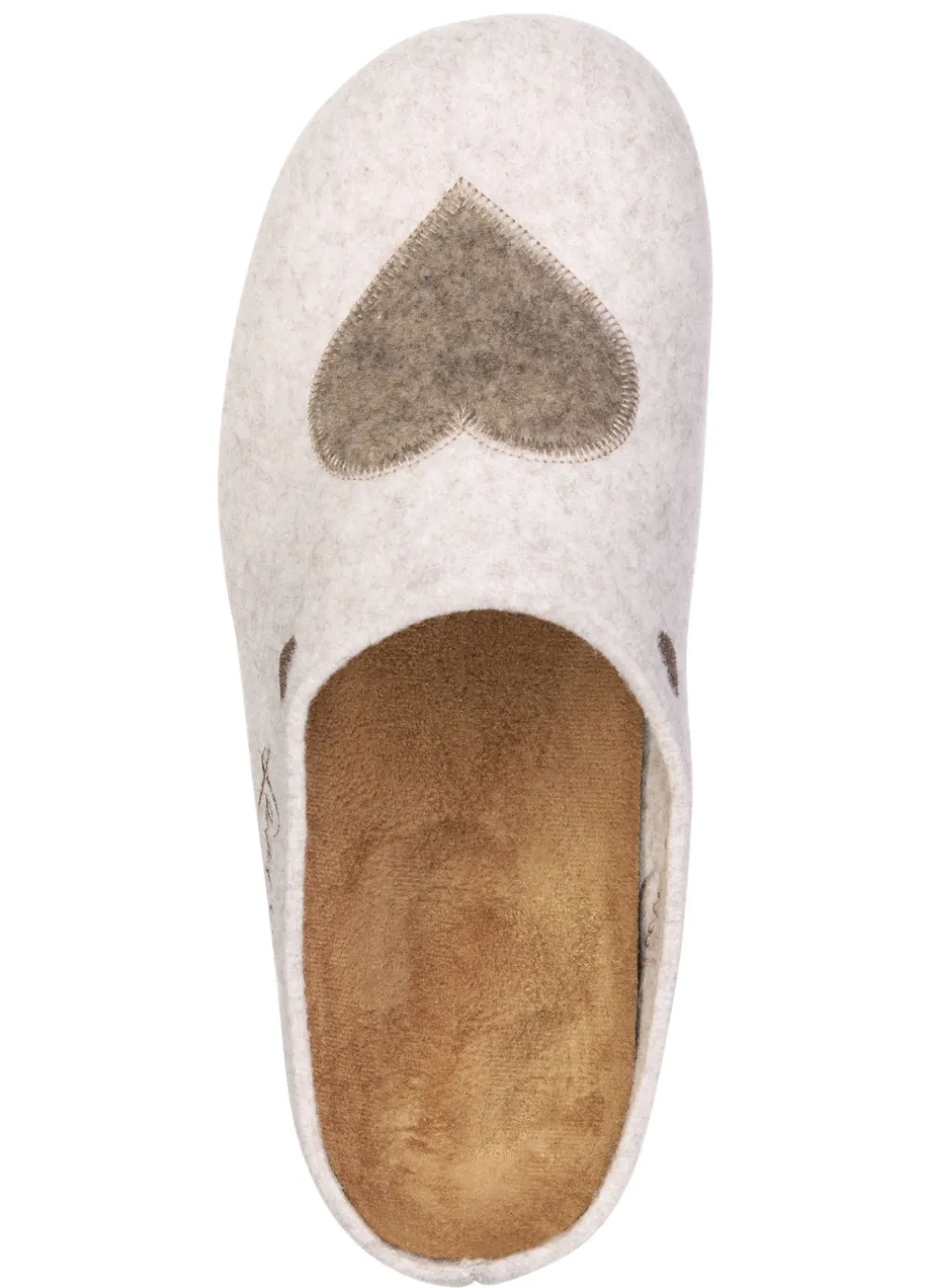 Hausschuhe von „Laurina“, aus Filz mit kontrastfarbener Applikation und Stickerei: herausnehmbares Fußbett, leichte Gummi-Laufsohle sowie 10 mm Keilabsatz