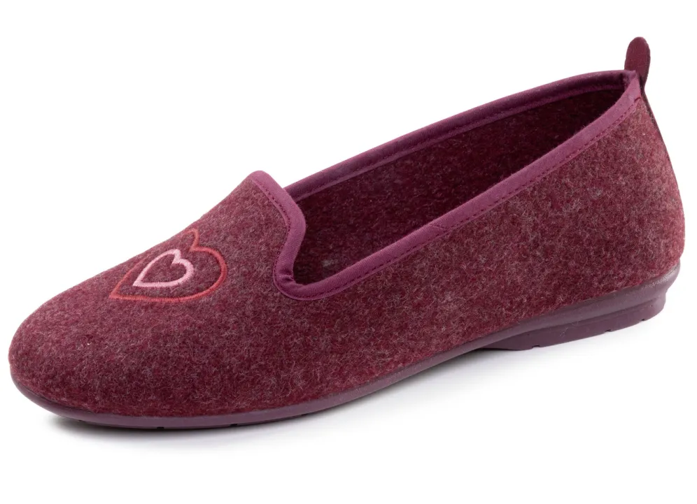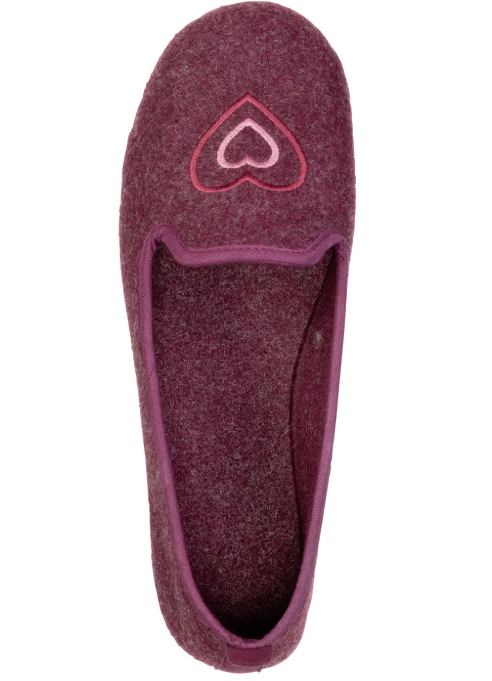 Hausschuhe von Laurina, aus Filzmaterial mit Herz-Stickerei: herausnehmbare Filz-Einlage, superleichte Gummi-Laufsohle sowie 10 mm Keilabsatz