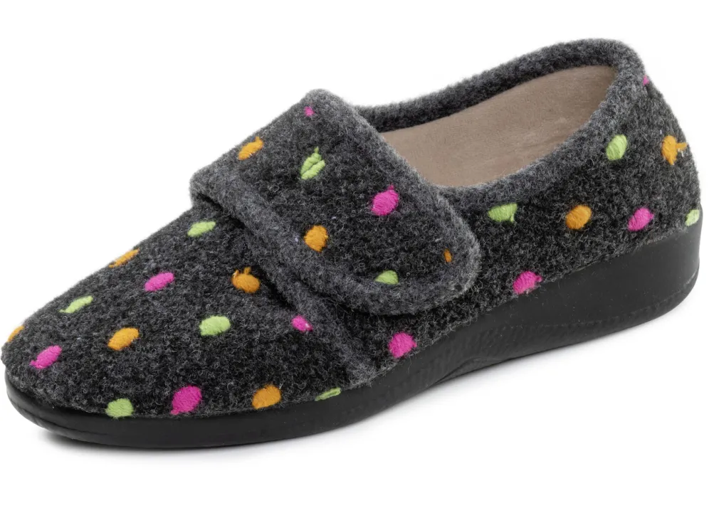 Laurina, klassische Damen-Hausschuhe, mit Klettverschluss in Anthrazit und in Größe 42.