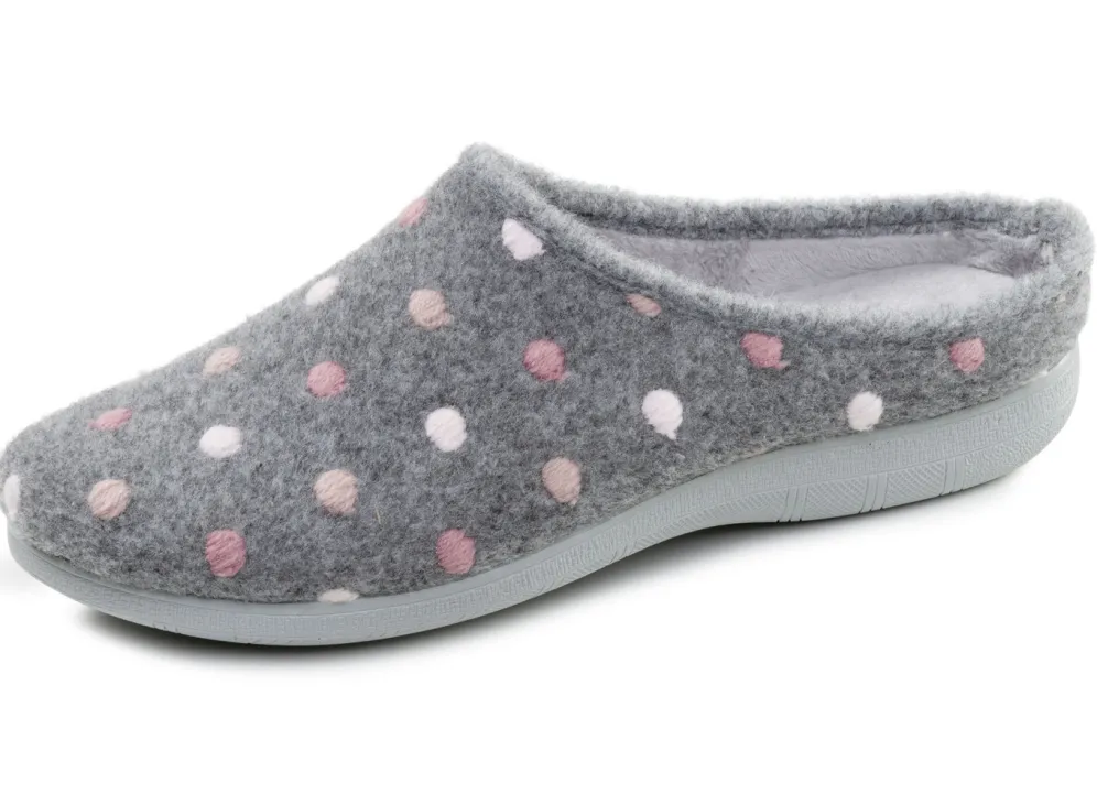 Laurina, klassische Damen-Hausschuhe, mit Pünktchen-Stickerei in Grau und in Größe 38.