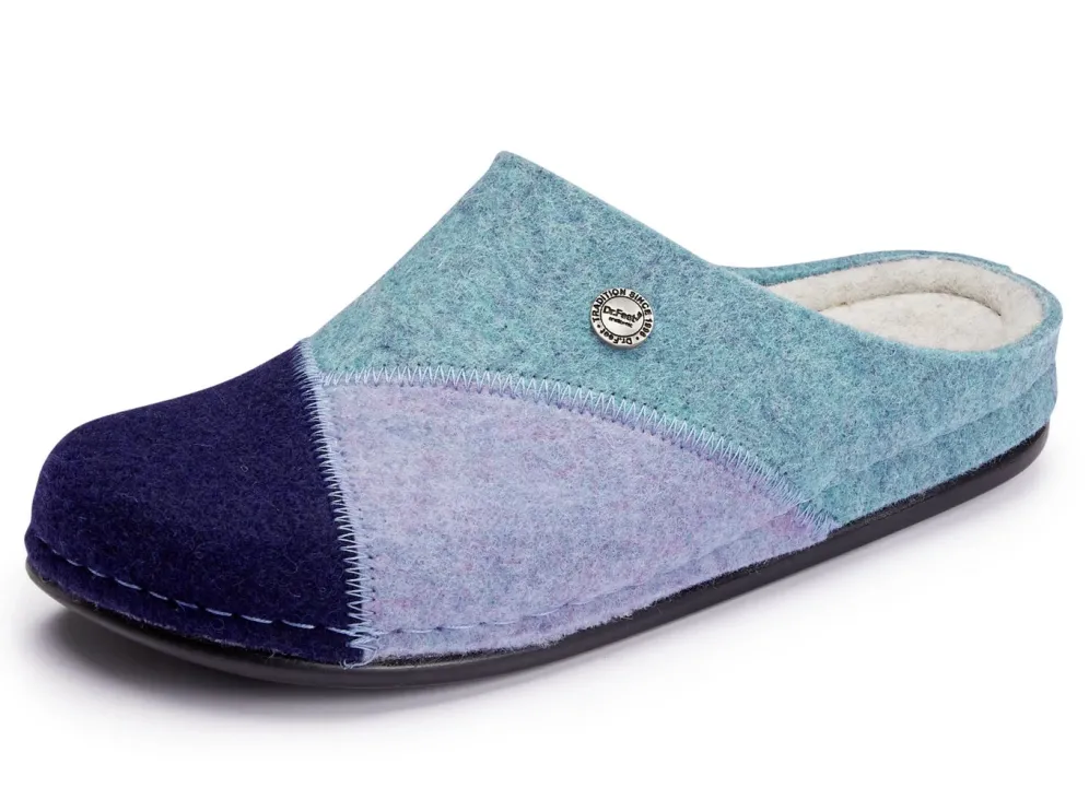Laurina, klassische Damen-Hausschuhe, Weite H, mit anatomisch geformtem Fußbett in Blau-Türkis und in Größe 42.