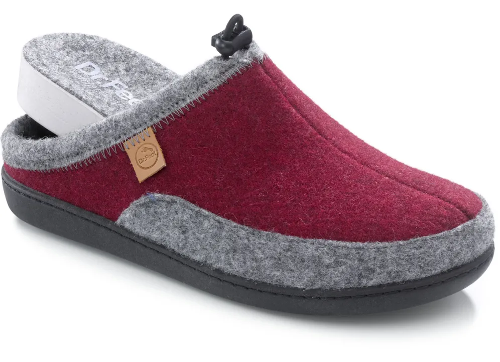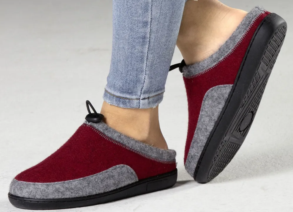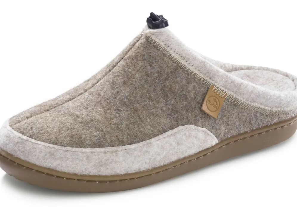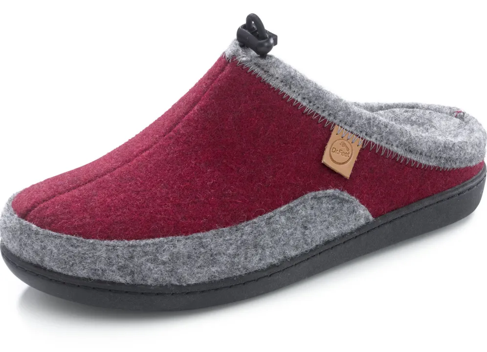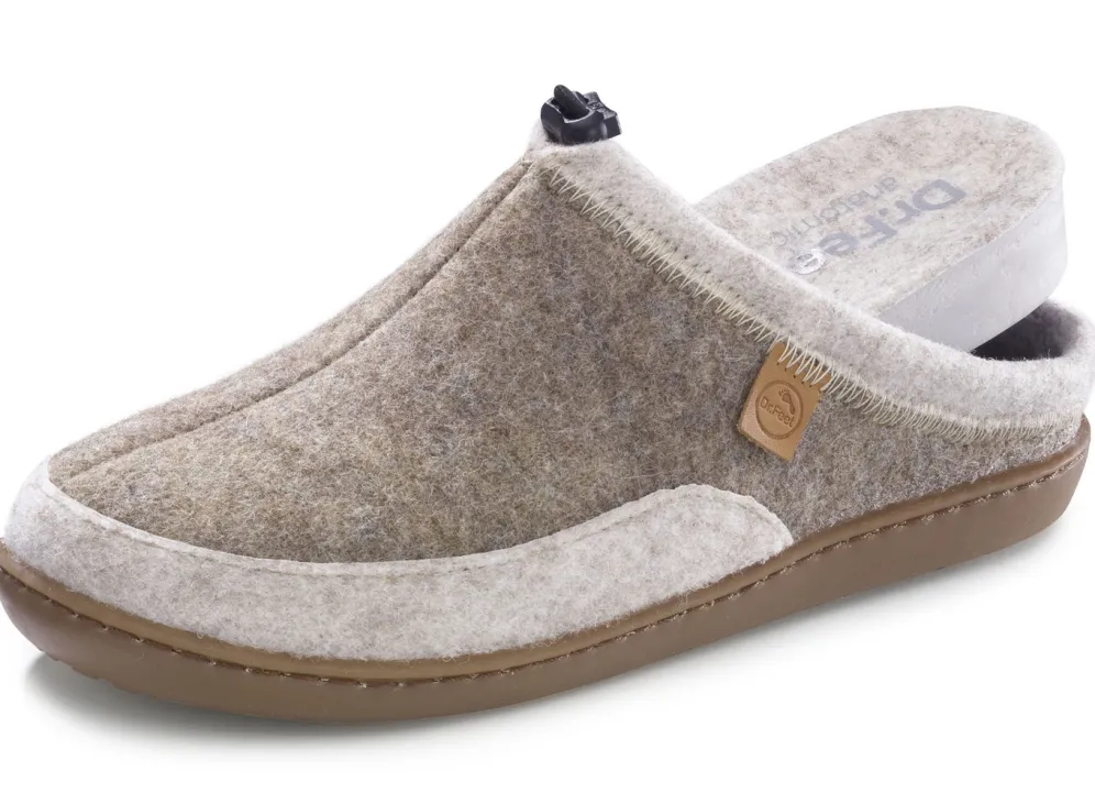 Hausschuhe von Laurina, aus Wollfilz mit elastischer Zugkordel: in Weite H, herausnehmbares, anatomisch geformtes Filz-Fußbett, leichte TR-Laufsohle sowie 20 mm Keilabsatz