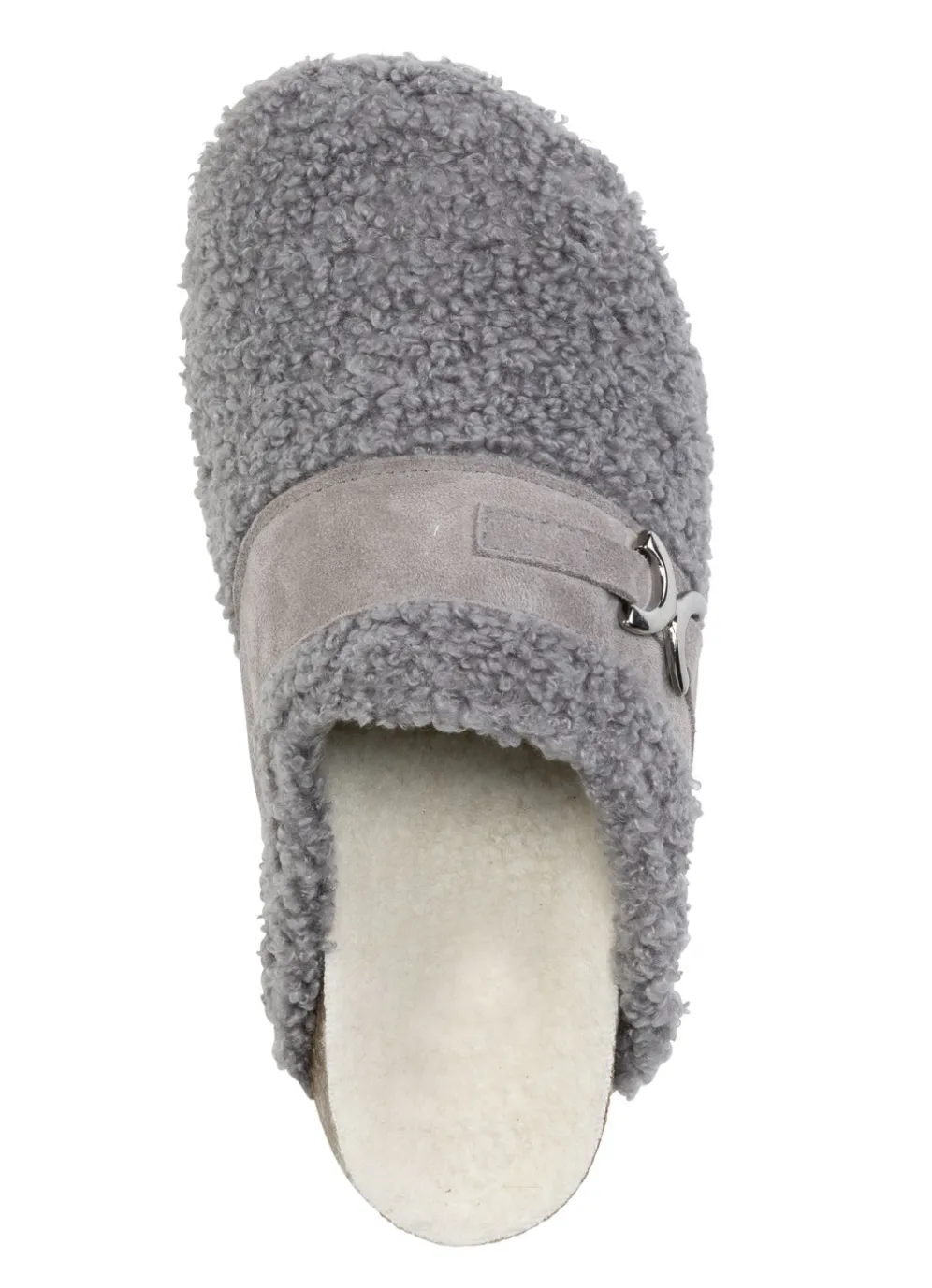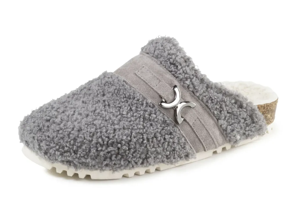 Laurina Pantoffel aus weichem Plüsch mit Veloursbesatz in Grau und in Größe 40.