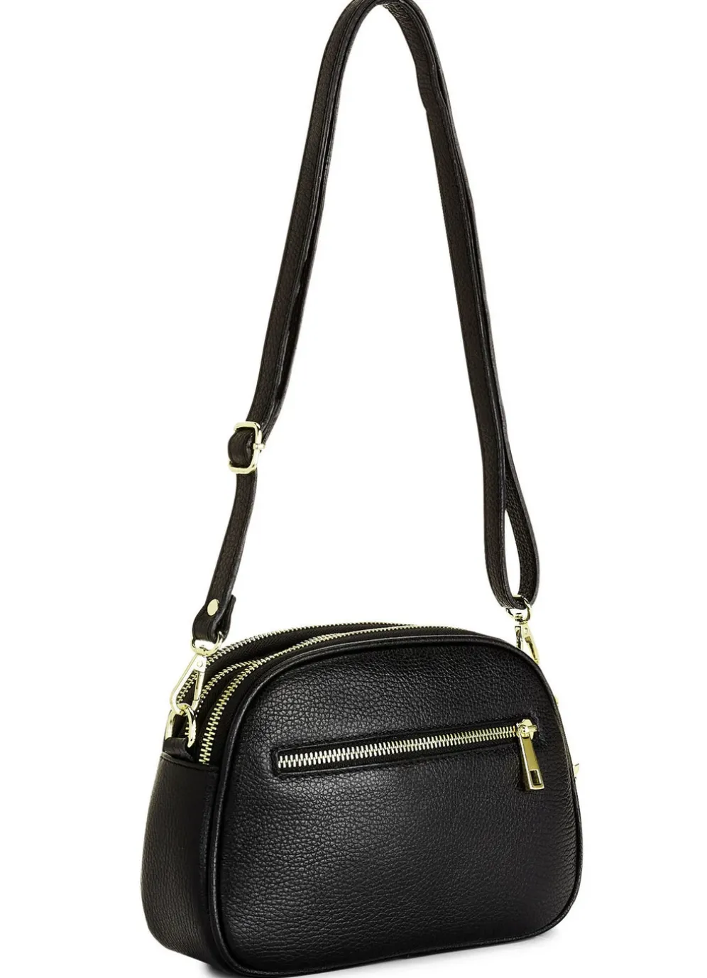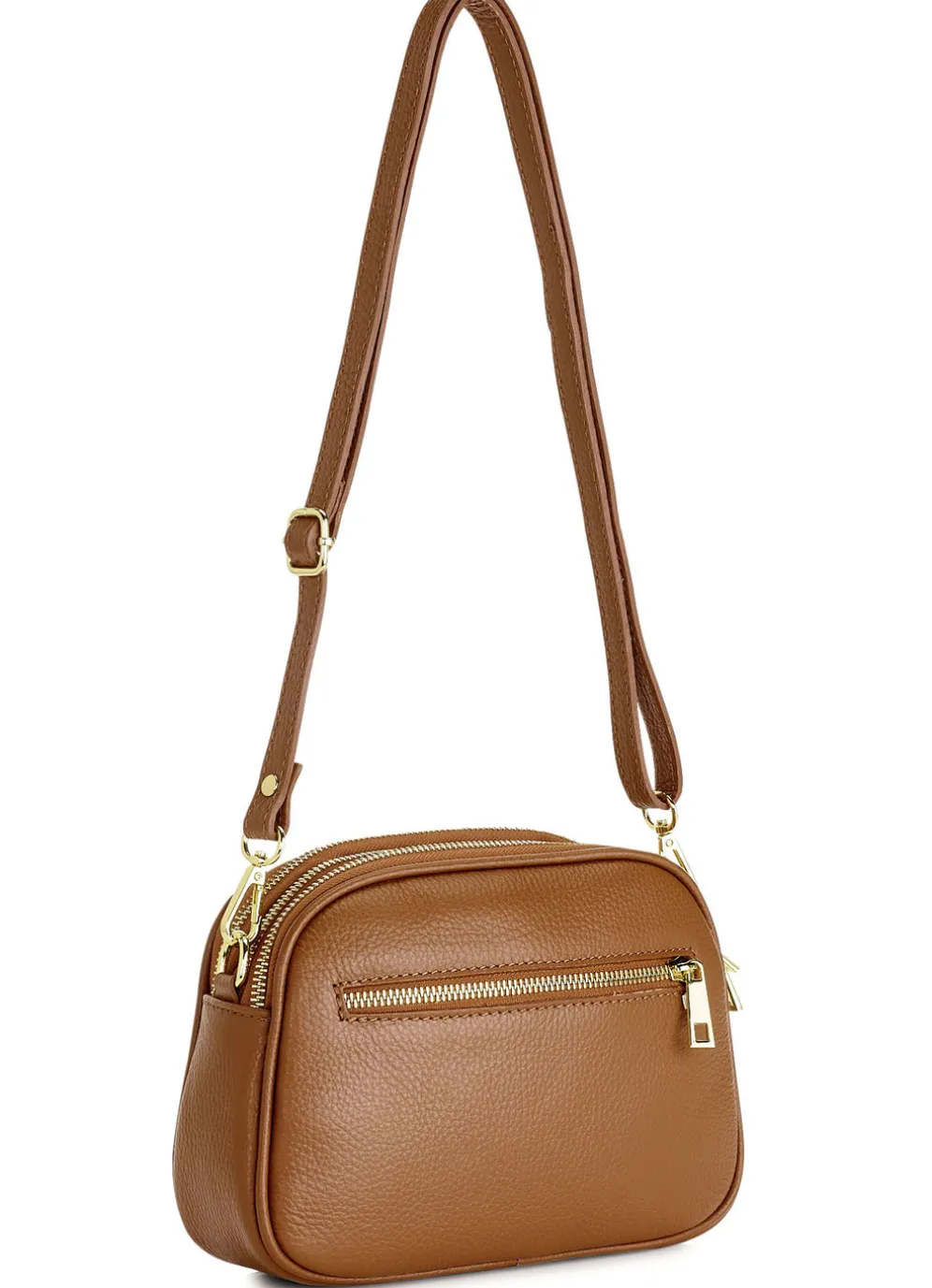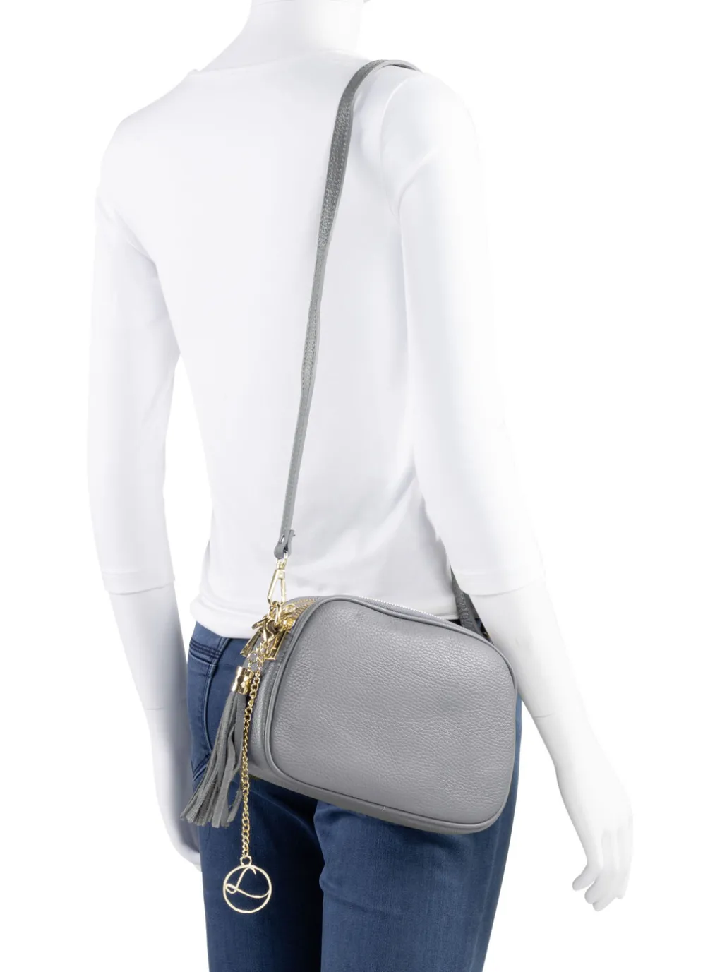 Tasche von Laurina, aus genarbtem Kalbleder: drei Reißverschluss-Hauptfächer, Innen- und Rückfach mit Reißverschluss, Textilfutter, ein abnehmbarer, verstellbarer Umhängeriemen ca. 69-127 cm. Gr: 23x16x7 cm