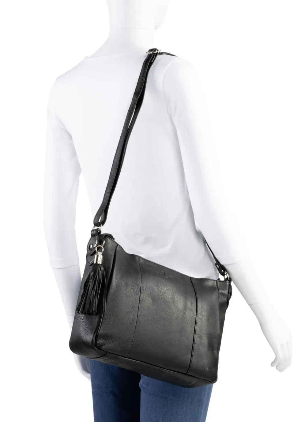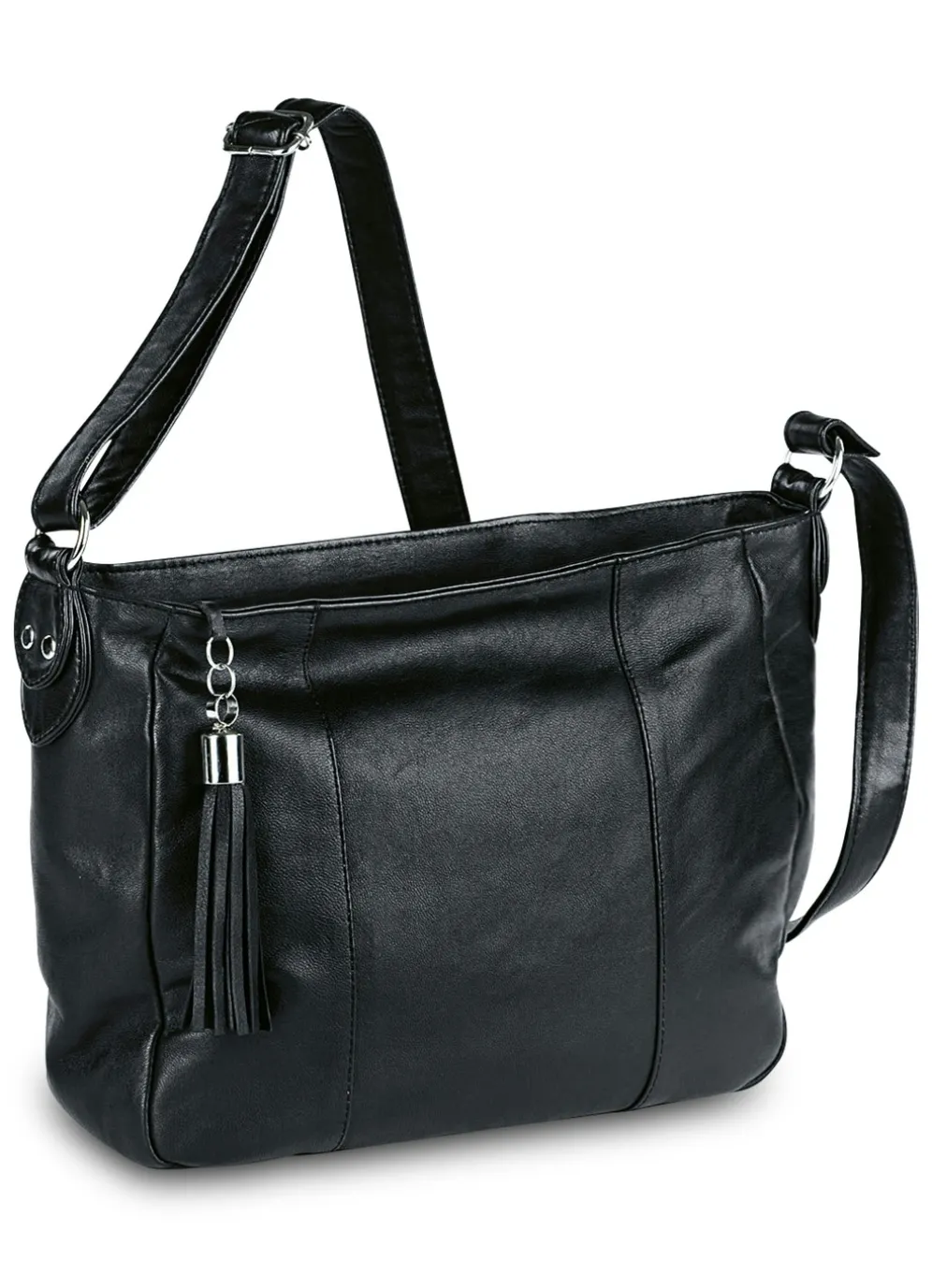 Tasche von Laurina, aus Rind-Nappaleder: Reißverschluss-Hauptfach, verschiedene Reißverschluss- und Steckfächer, Textilfutter, verstellbarer Umhängeriemen ca. 60-110 cm Gr: 30x23x9 cm