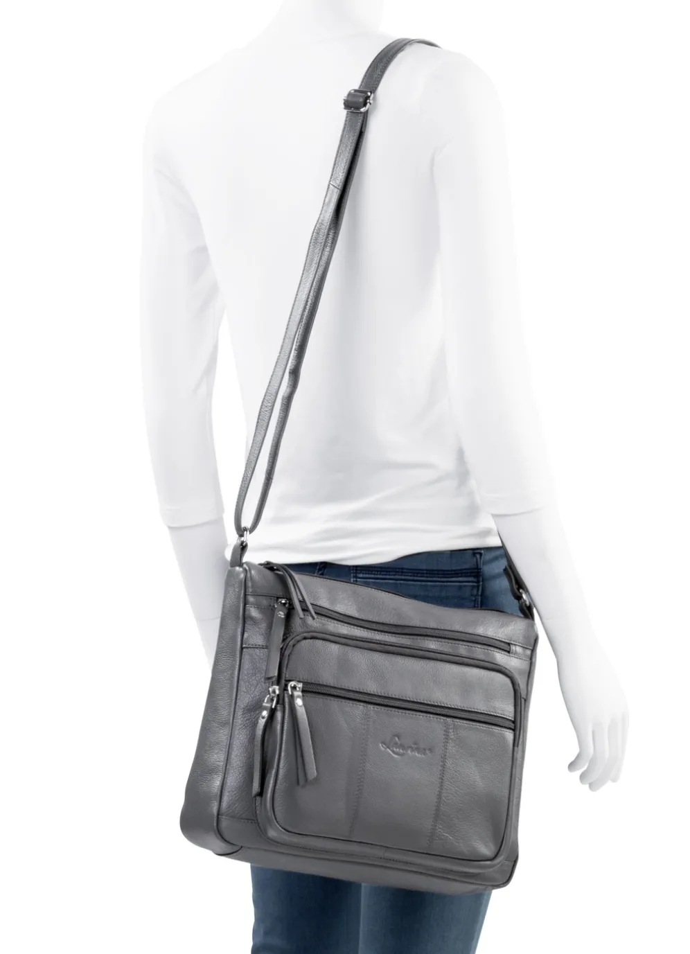 Tasche von „Laurina“, aus weichem Vollrind-Nappaleder: Reißverschluss-Hauptfach, diverse Reißverschluss- und Steckfächer, Textilfutter, ein verstellbarer Umhängeriemen ca. 82-150 cm. Gr: 30x25x11 cm