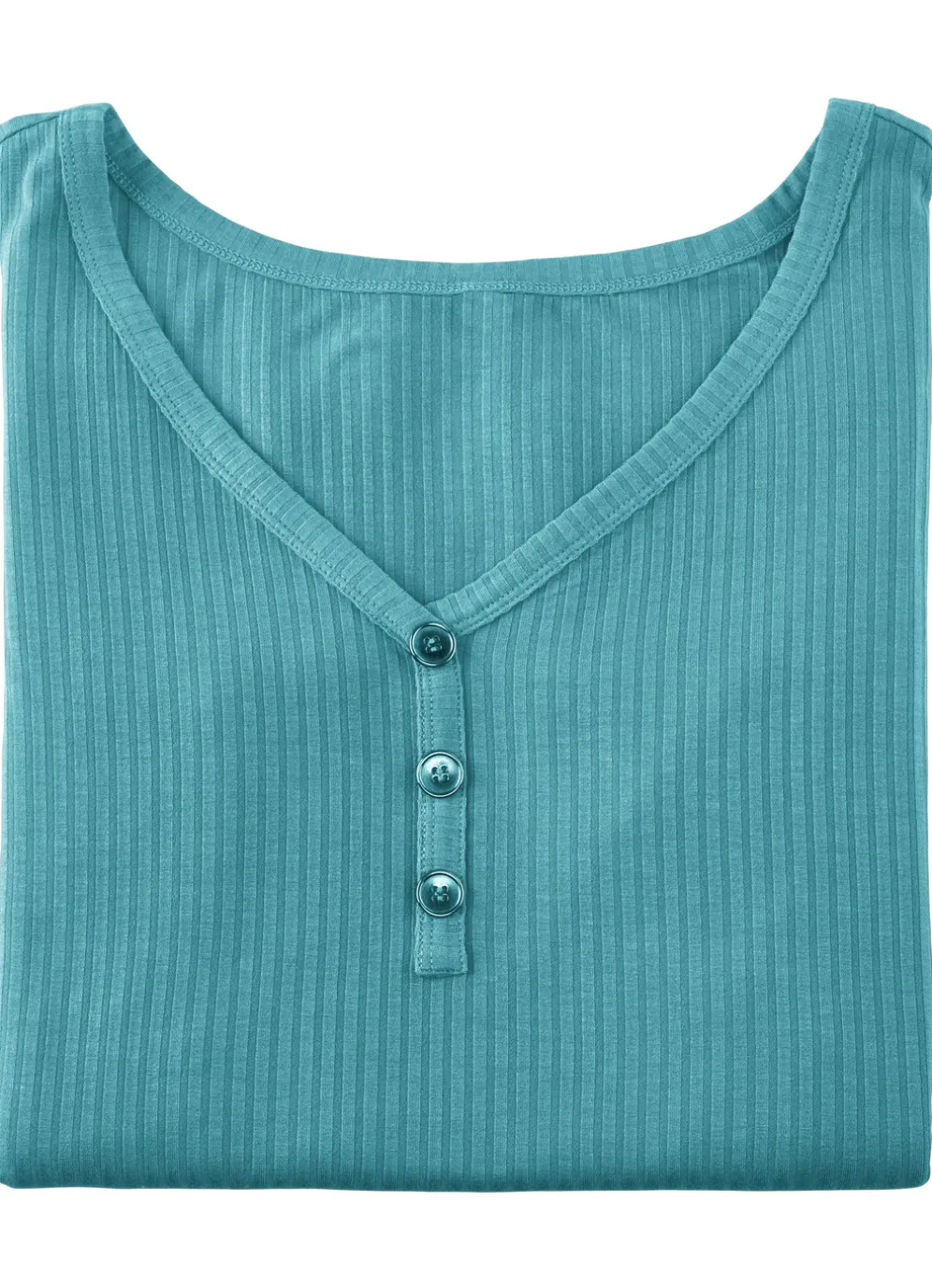 Sommerliches „Laurina“-Trägershirt mit V-Ausschnitt und Zierknopfleiste. Länge ab 66 cm.