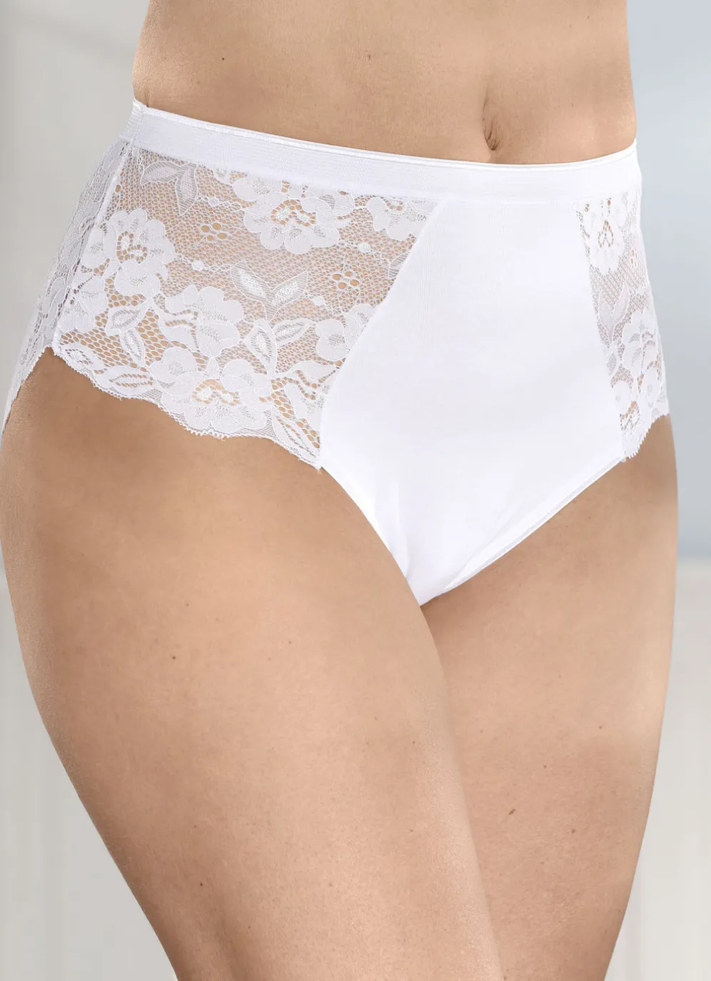 Weißer „Laurina”-Slip mit hübscher Elastikspitze im Vorder- und Rückteil.