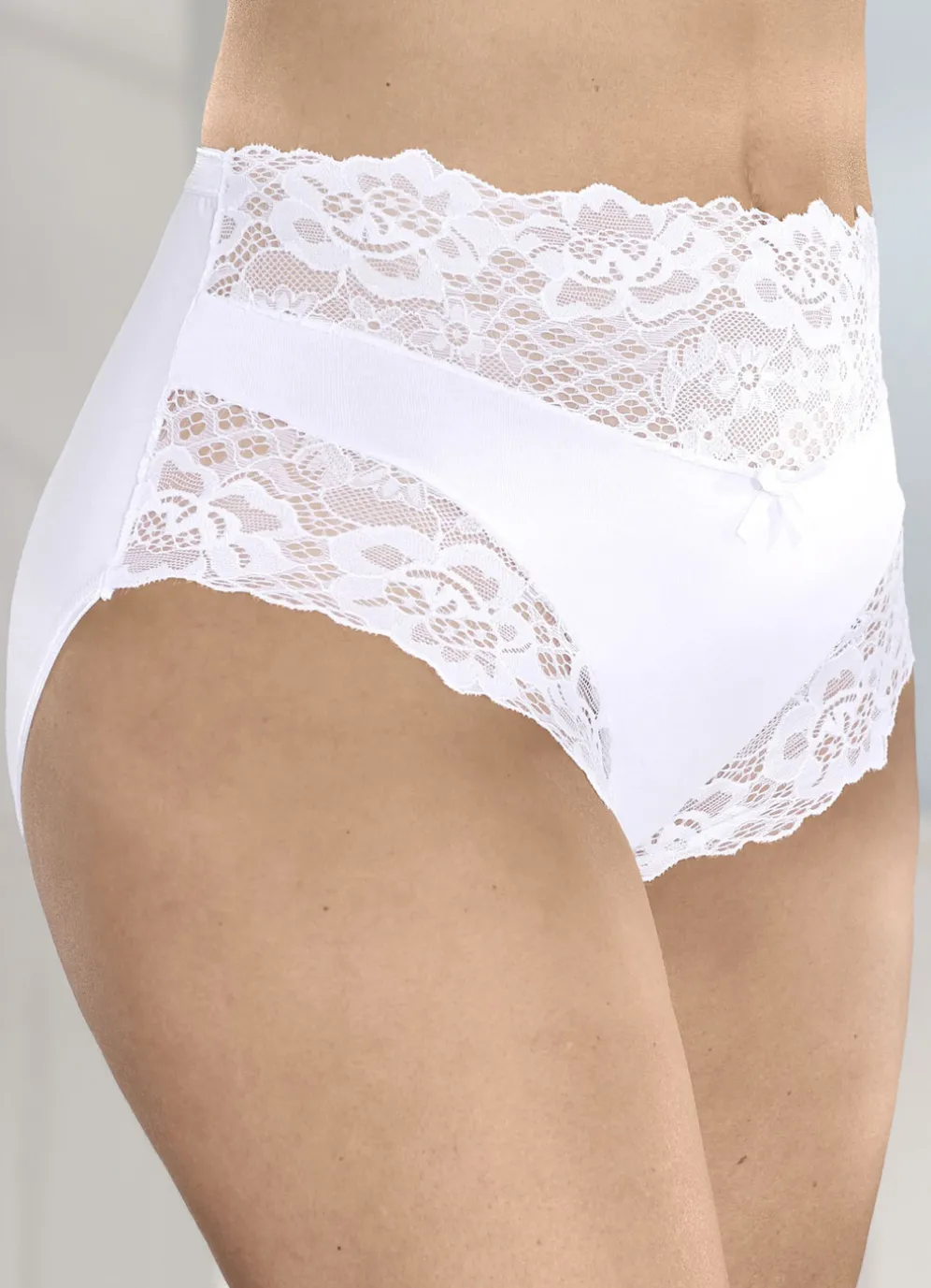 Weißer „Laurina“-Slip mit hübscher Elastikspitze im Vorderteil sowie elastischen Abschlüssen.