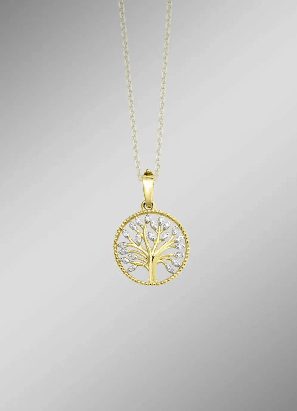 Lebensbaum-Anhänger mit 21 Brillanten in der Legierung Gold 585/- fein.