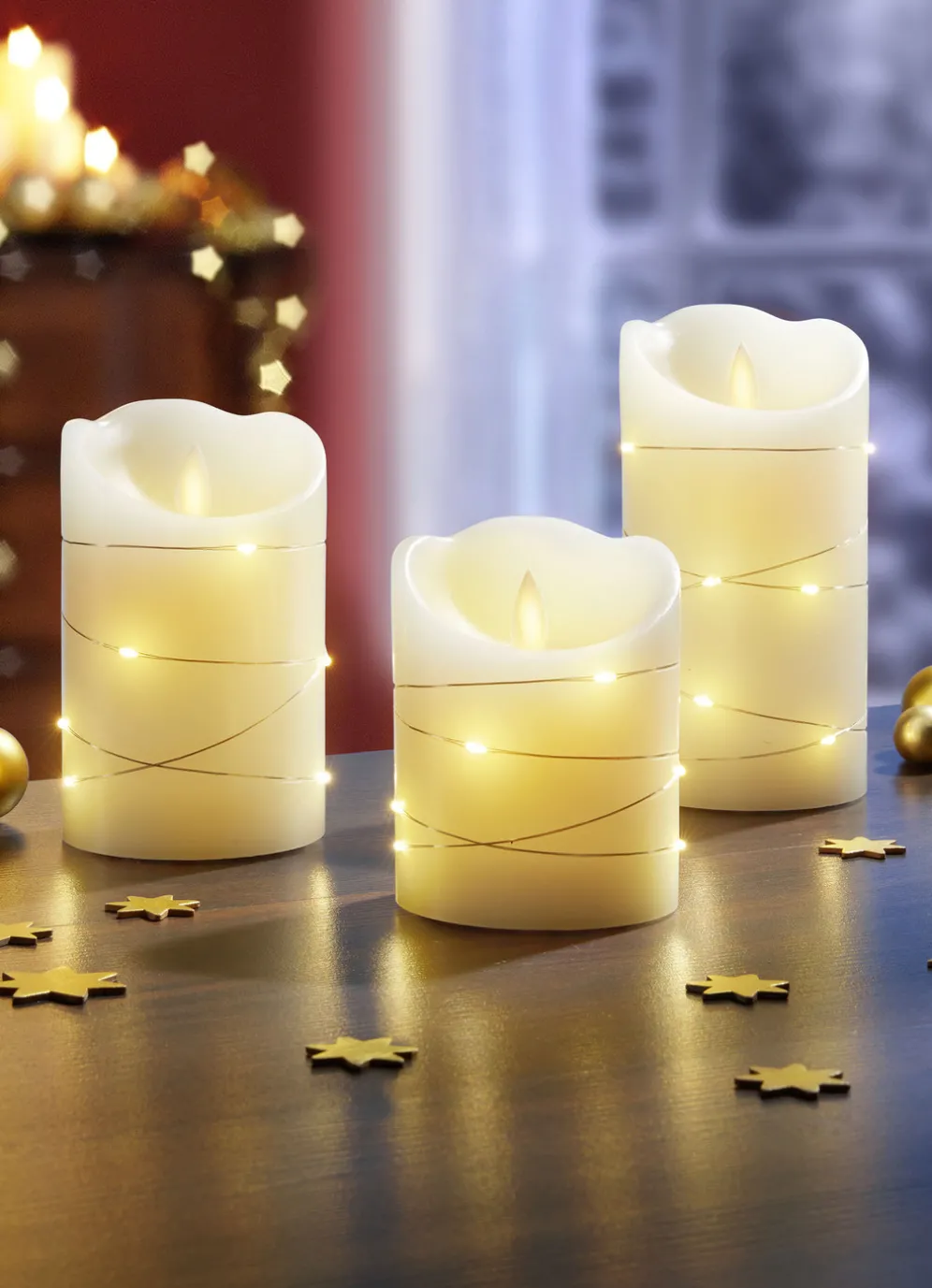LED-Echtwachskerzen, 3er-Set, mit Flackereffekt