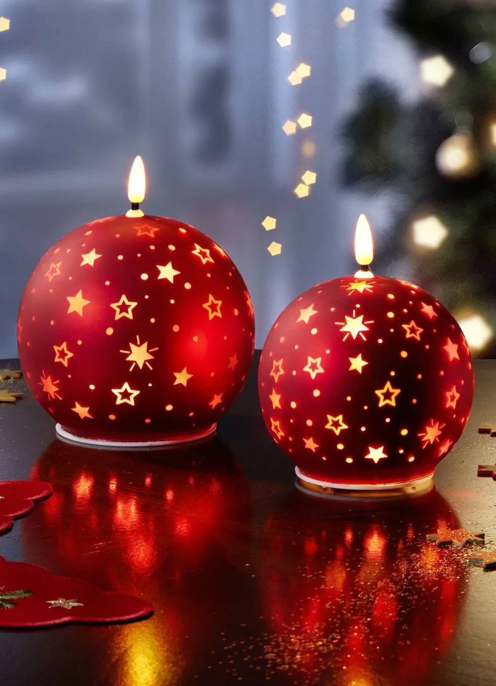 LED-Kerzen mit Sternen-Motiv, 2er-Set in Rot.