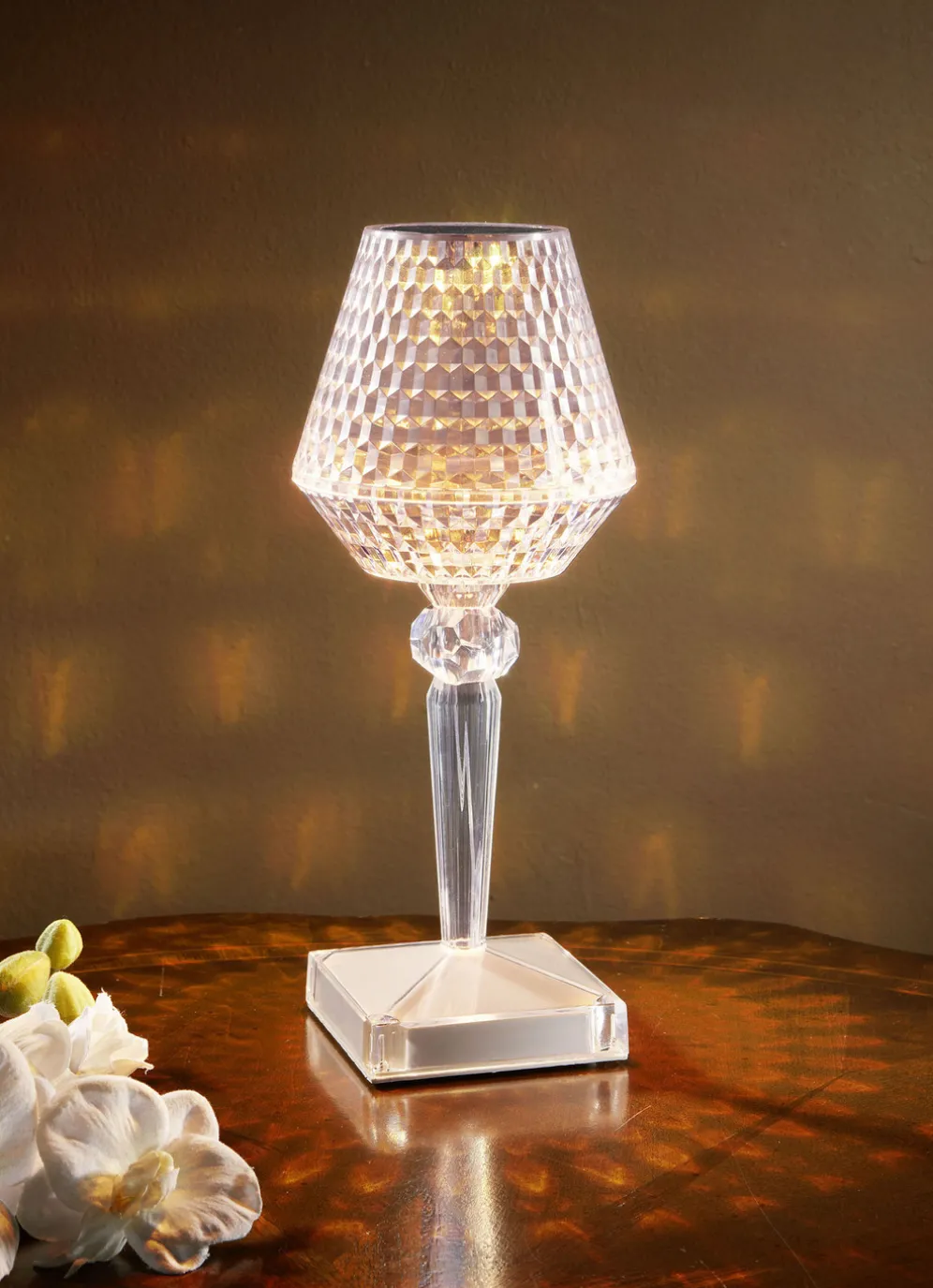 LED-Kristall-Tischleuchte mit Touchfunktion in Transparent.