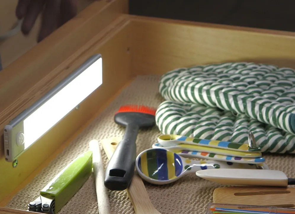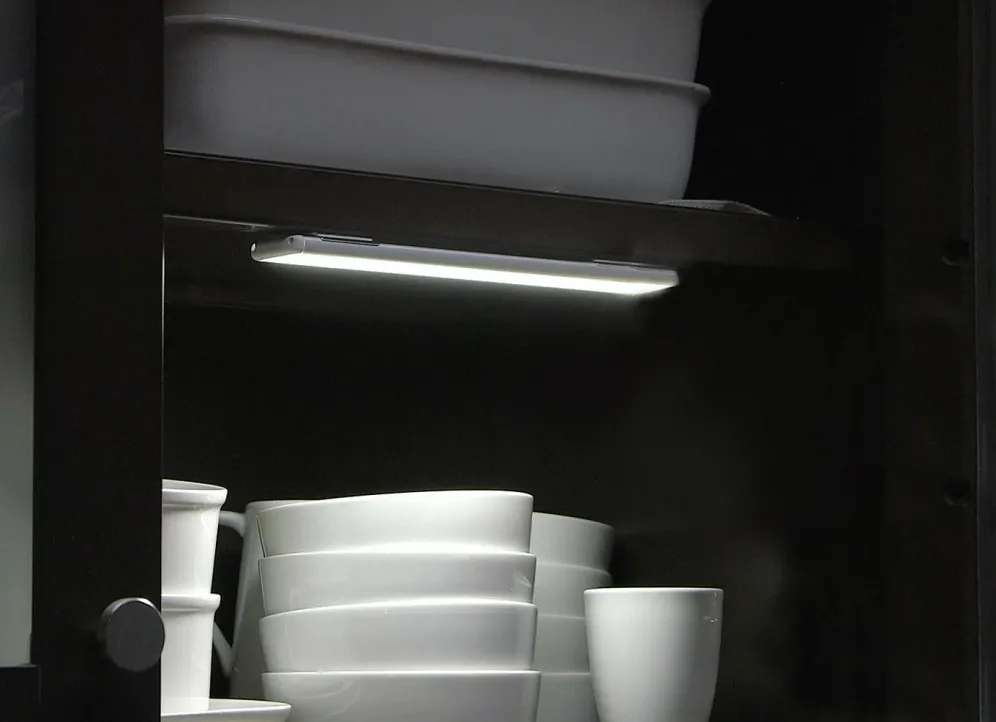 HandyLux LED-Leuchtleiste mit Bewegungssensor. Ideal für die Beleuchtung von dunklen Stellen wie Schubladen, Treppen, Schränken, Keller, Garagen uvm. Ultrahelle und langlebige LEDs mit höchster Leuchtkraft (strahlendes Weißlicht in 4000 Kelvin). Ultraflach und federleicht, auch als mobile Leuchte unterwegs verwendbar. Flexible Montage mittels Klebepadmagnethalterung oder fixe Montage möglich. Ohne Batterien. Wiederaufladbarer Lithium-Ionen-Akku. Inkl. USB-Ladekabel. Energiesparende automatische Abschaltfunktion. 90 Lumen. L23,5xB3,81xH0,64 cm.