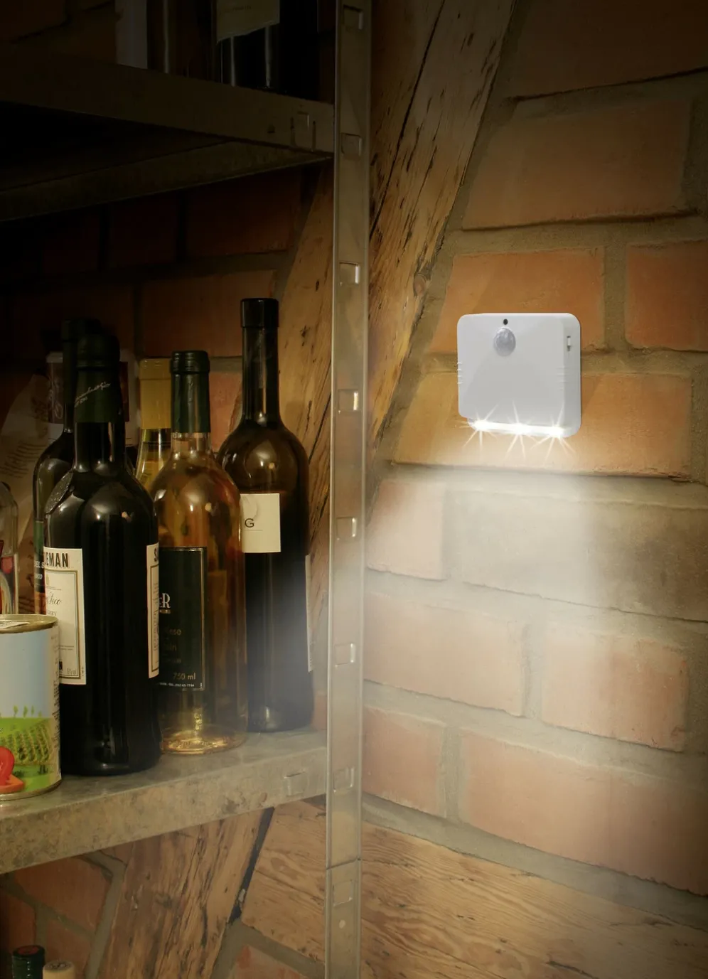 EASYmaxx LED-Sensorlicht, 2er-Set. Sorgen Sie jetzt für Licht, wo Sie es gerade brauchen – im Flur, Treppenaufgang, Schrank und in anderen schlecht beleuchteten Ecken. Das praktische, batteriebetriebene (Batterien nicht im Lieferumfang enthalten) LED-Sensorlicht (3 LEDs, 32 Lumen) schaltet sich bei Bewegungen im Umkreis von 3 Metern automatisch ein und auch wieder aus, bei einem Erfassungswinkel von 120°. Einfach dort, wo Sie mehe Licht benötigen, aufkleben oder anschrauben. Maße: L6,5xB6,2xH1,5 cm.