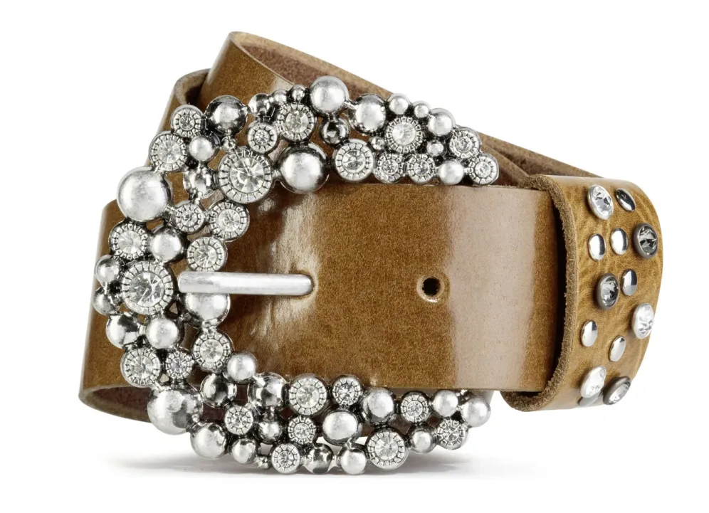 Ledergürtel mit Glitzersteinchen in Cognac und in Größe 105.