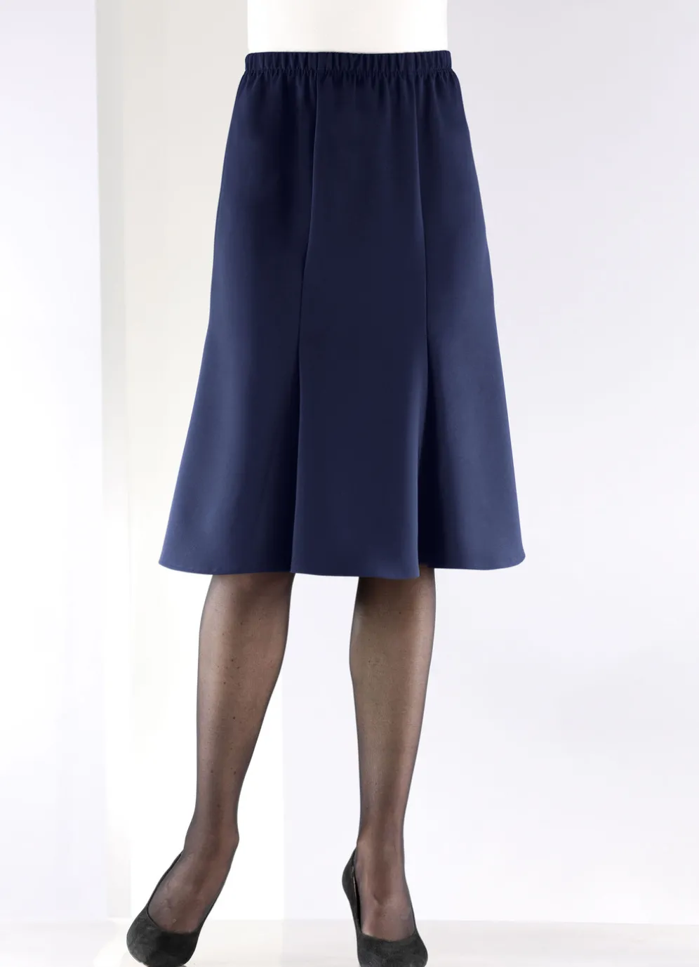 Leicht ausgestellter 6-Bahnenrock in Marine und in Größe 40.