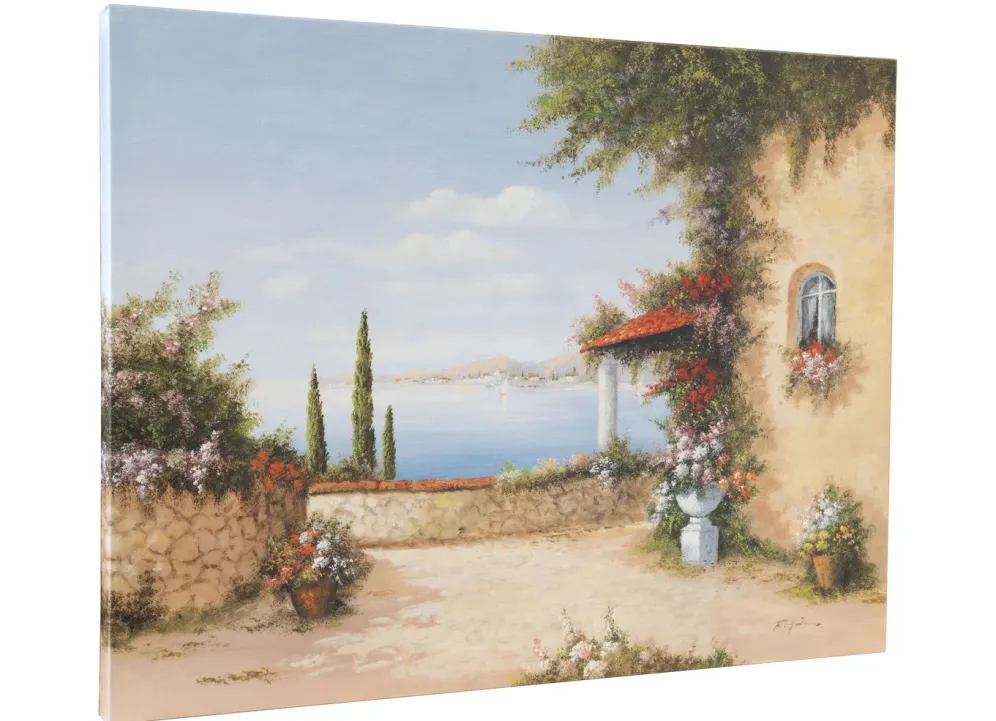 Dieses wunderschöne Bild vom Künstler Rolf Hölter zeigt eine farbenfrohe südländische Terrasse und erweckt Urlaubsgefühle. Es trägt den passenden Titel „Südländische Terrasse“.