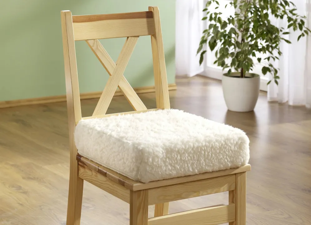 Sehr bequeme Sitzerhöhung für Erwachsene und Kinder. Abnehmbarer Bezug, Winterseite aus 100% Schafschurwolle, Sommerseite aus 100% Baumwolle. Ein fester Schaumstoffkern verhindert das Einsinken. 40x40x10 cm.