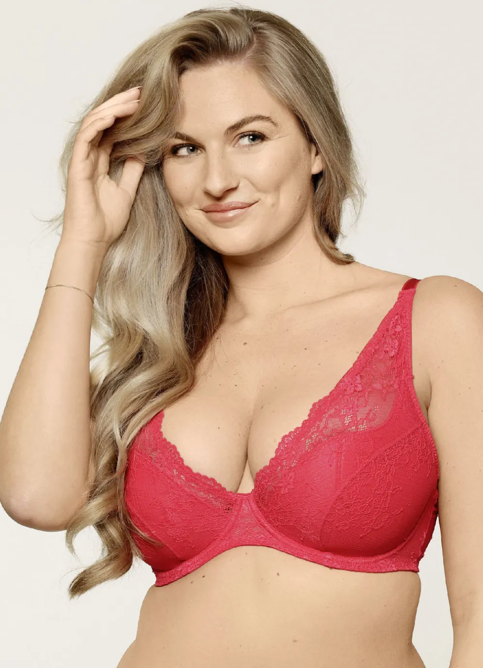 LingaDore Bügel-BH mit zarter Elastikspitze in Cup E, in Rot sowie in Größe 85.