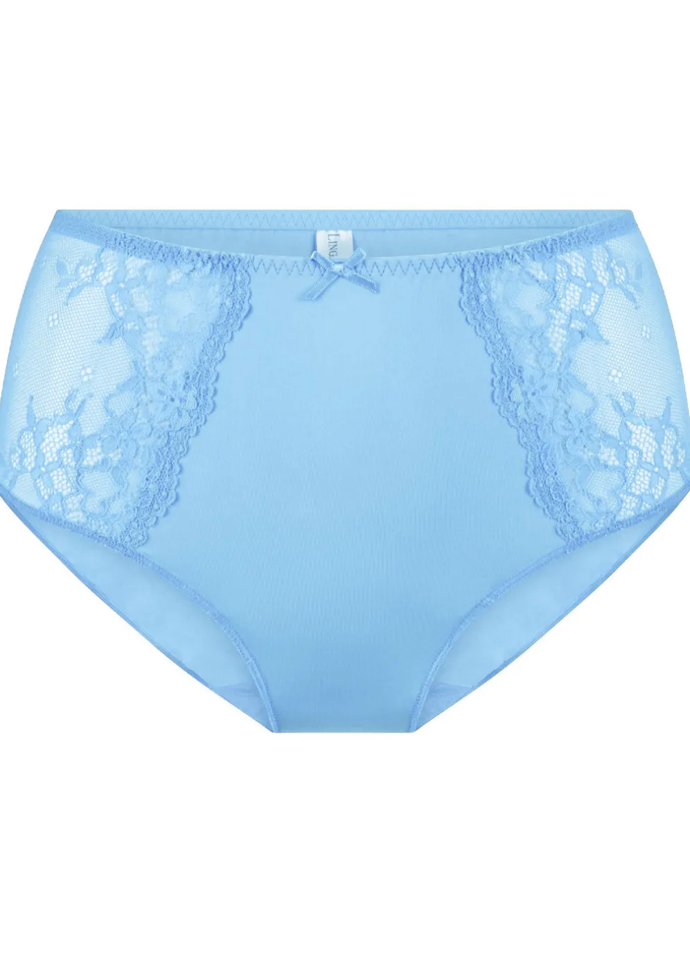 Türkisblauer Slip von „LingaDore“, mit Elastikspitze im Vorderteil sowie Baumwolleinlage im Schritt.