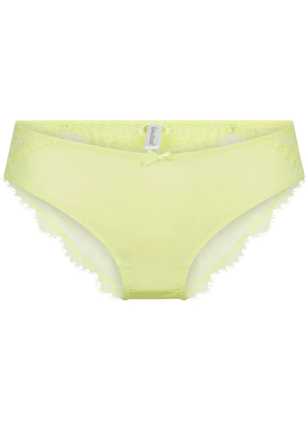 „LingaDore“-Slip in Limette, mit zarter Elastikspitze im Vorder- und Rückteil sowie Baumwolleinlage im Schritt.