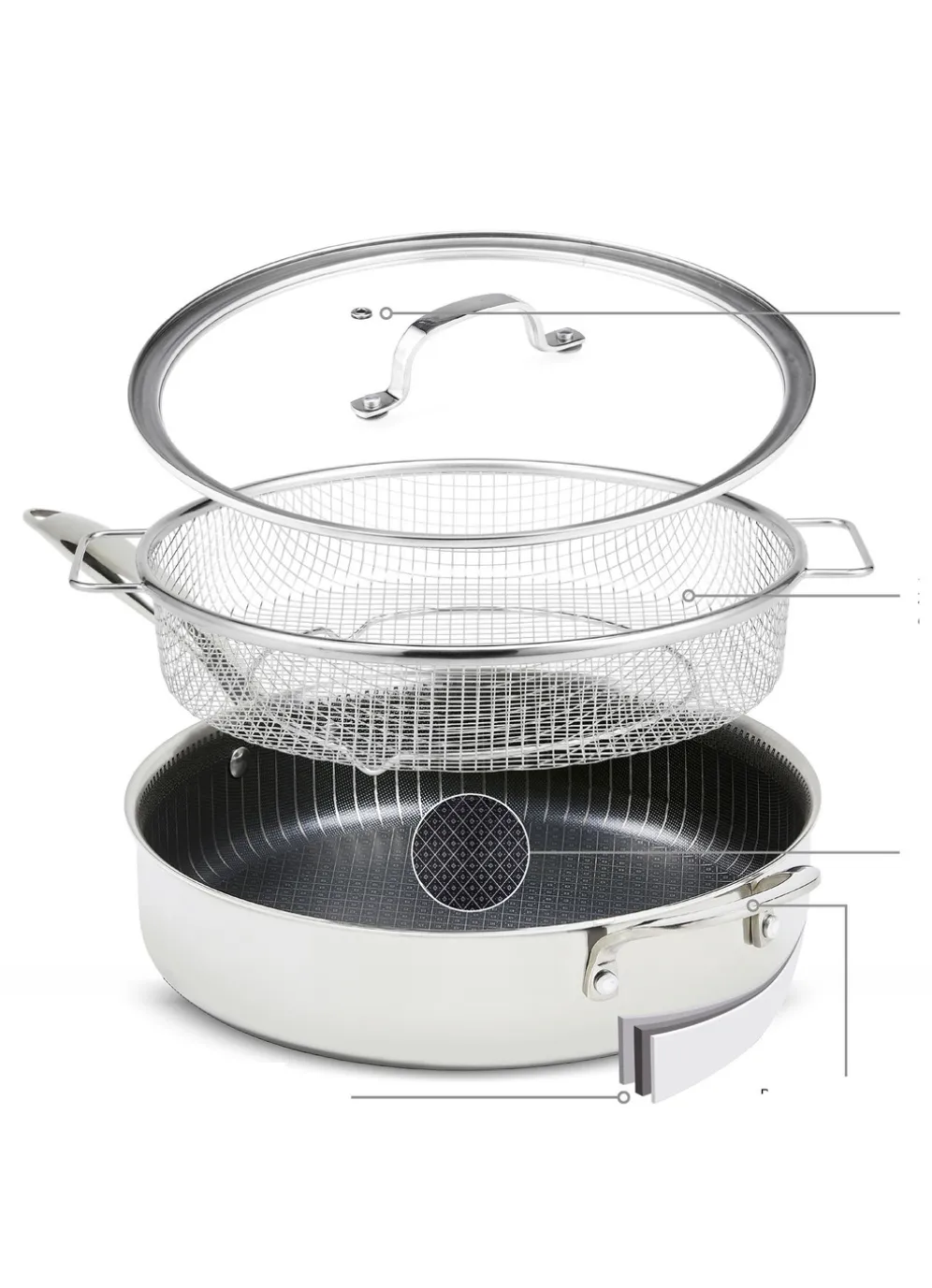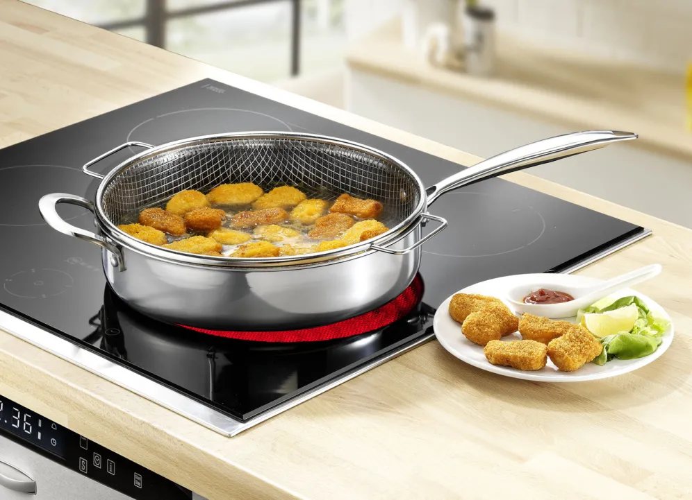 - Edelstahlpfanne mit Antihaftbeschichtung