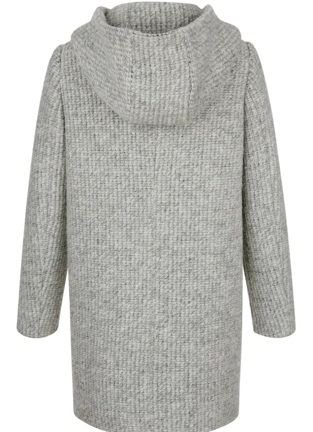 Longjacke mit fester Kapuze in Hellgrau-Ecru und in Größe 38.