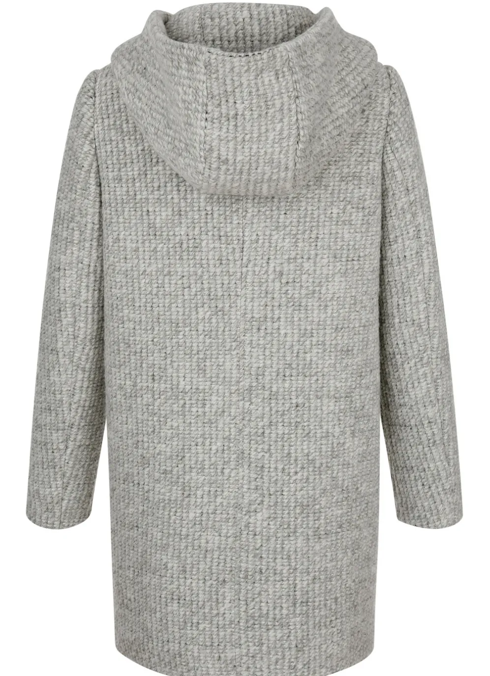 Longjacke mit fester Kapuze, Knopfleiste, Schubtaschen mit Blende sowie einer Innentasche. Länge ca. 84 cm. Die Qualität: Bicolorgewebe aus 52% Polyester, 26% Polyacryl und 22% Wolle; Taftfutter aus 100% Polyester