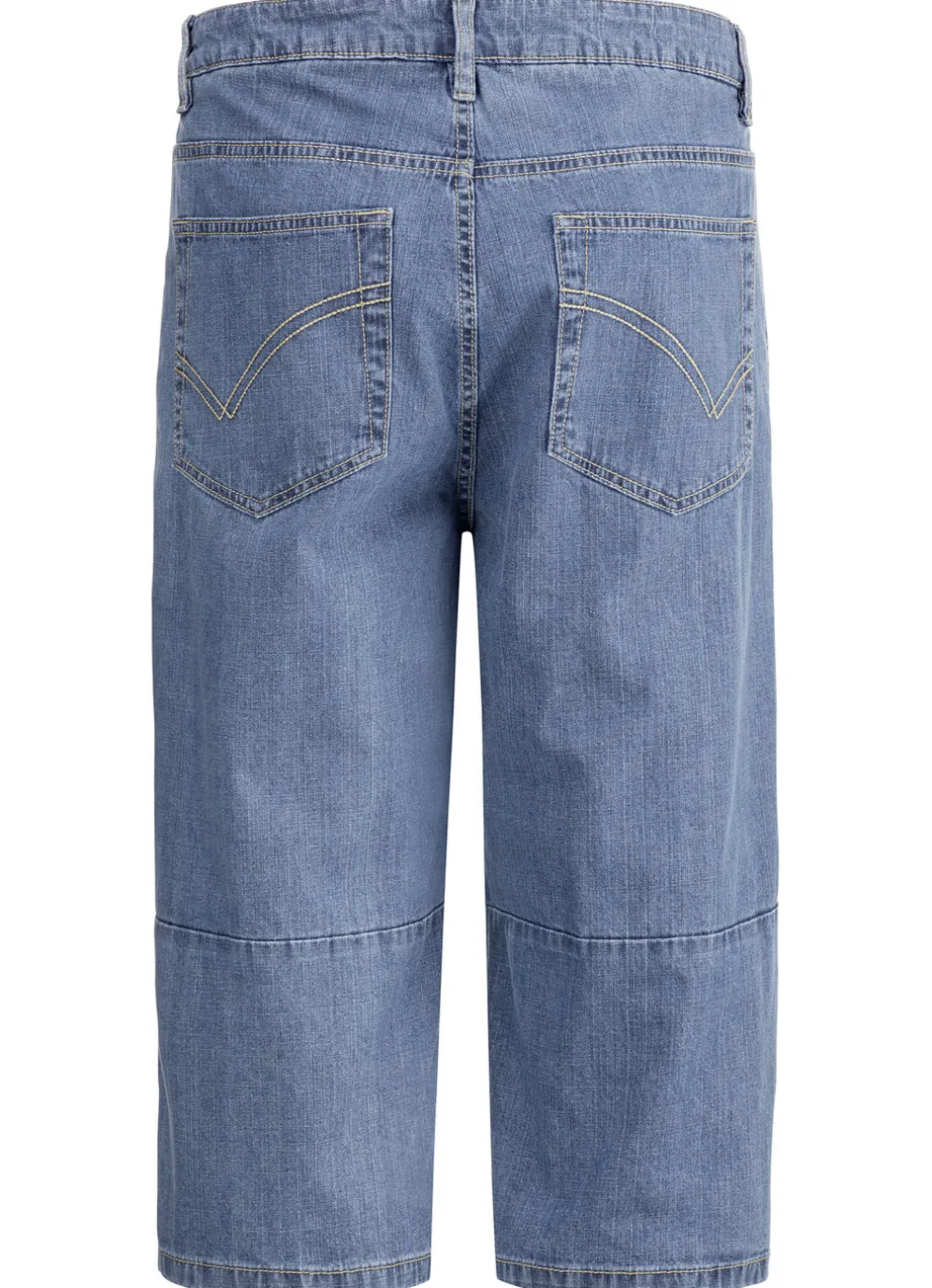 Luftige Long-Bermudas mit Ziersteppungen allover, Jeanssattel, Nietenzier an den Seitentaschen, Kleingeldtasche sowie aufgesetzten Gesäßtaschen mit Ziersteppung.