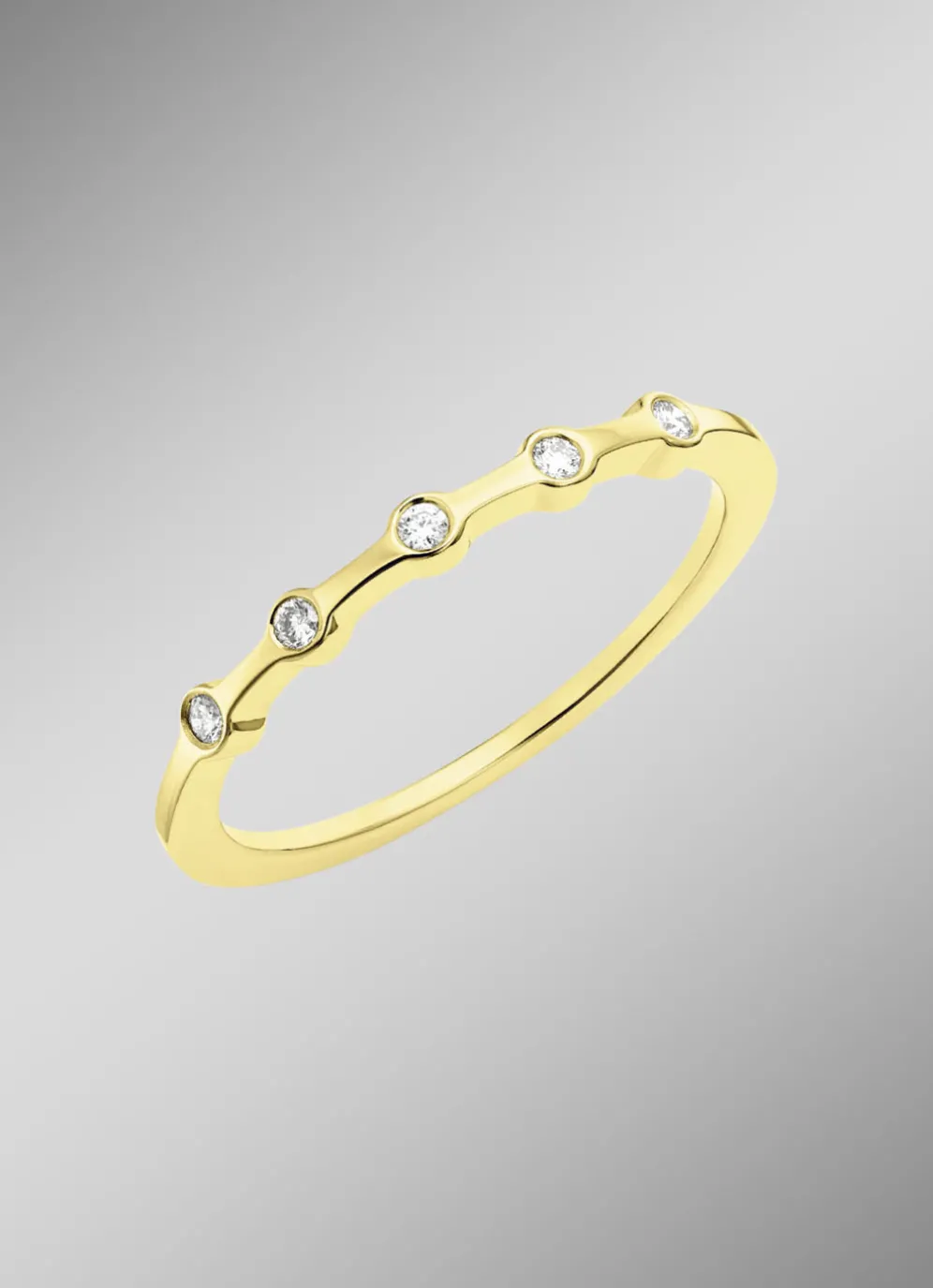 Strahlende Perfektion. Dieser exklusive Damenring aus hochwertigem 585er Gold besticht durch seine fünf lupenreinen weißen Brillanten, die in perfekter Harmonie funkeln. Das elegante Design und der warme Glanz des Goldes verleihen dem Ring eine zeitlose Schönheit und unvergängliche Raffinesse. Jeder Brillant wurde mit höchster Präzision eingesetzt, um die natürliche Brillanz hervorzuheben und ein funkelndes Highlight zu schaffen.