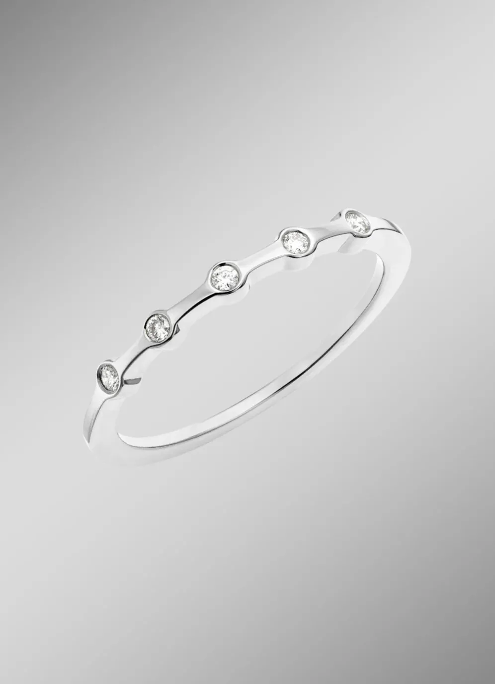 Strahlende Perfektion. Dieser exklusive Damenring aus hochwertigem 585er Weißgold besticht durch seine fünf lupenreinen weißen Brillanten, die in perfekter Harmonie funkeln. Das elegante Design und der warme Glanz des Goldes verleihen dem Ring eine zeitlose Schönheit und unvergängliche Raffinesse. Jeder Brillant wurde mit höchster Präzision eingesetzt, um die natürliche Brillanz hervorzuheben und ein funkelndes Highlight zu schaffen.