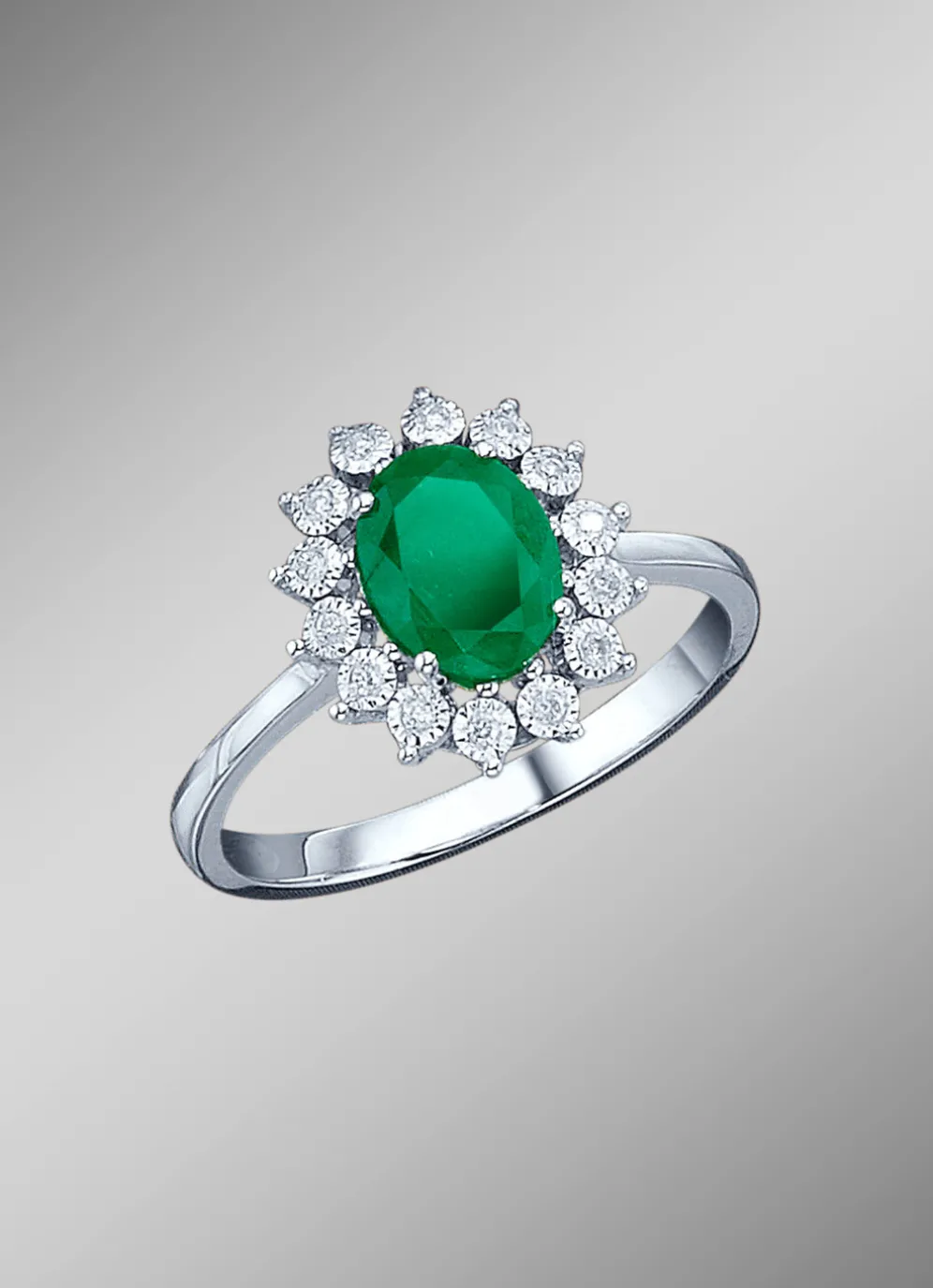 Majestätischer Damenring mit Diamanten und echt Smaragd