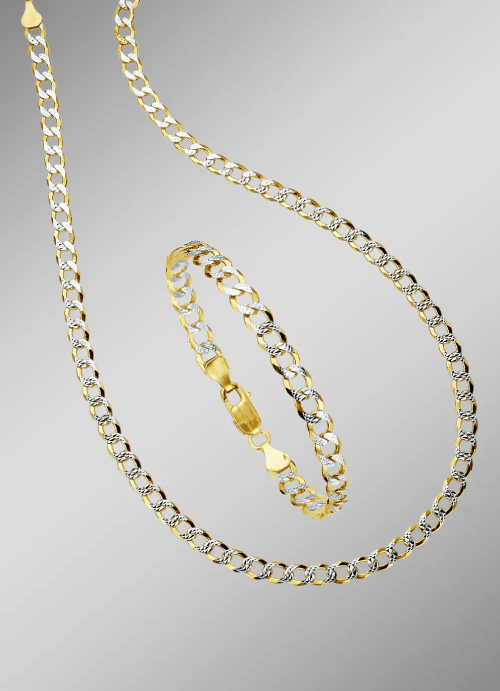 So hauchen Sie jedem Look das Extra an Exklusivität ein: Diese massive Panzerketten-Garnitur verwandelt mit ihren diamantierten Gliedern aus Silber 925/- fein auch das legere Freizeit-Outfit in eine Gala-Garderobe.