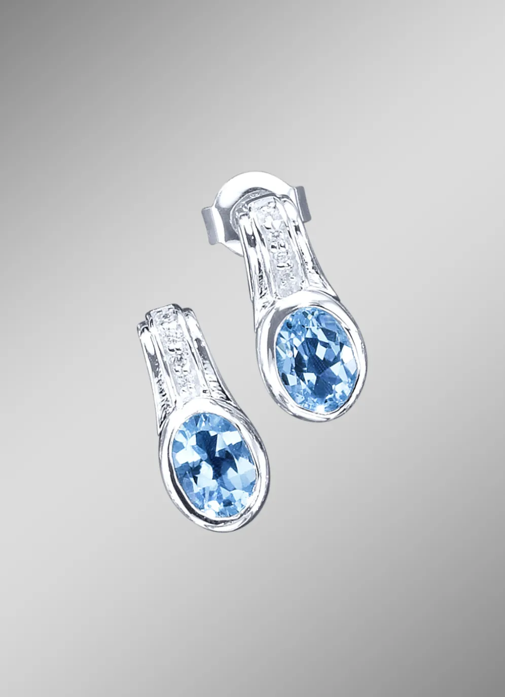 Massive Ohrstecker mit Blautopas und Zirkonia in der Legierung Silber 925/- fein.