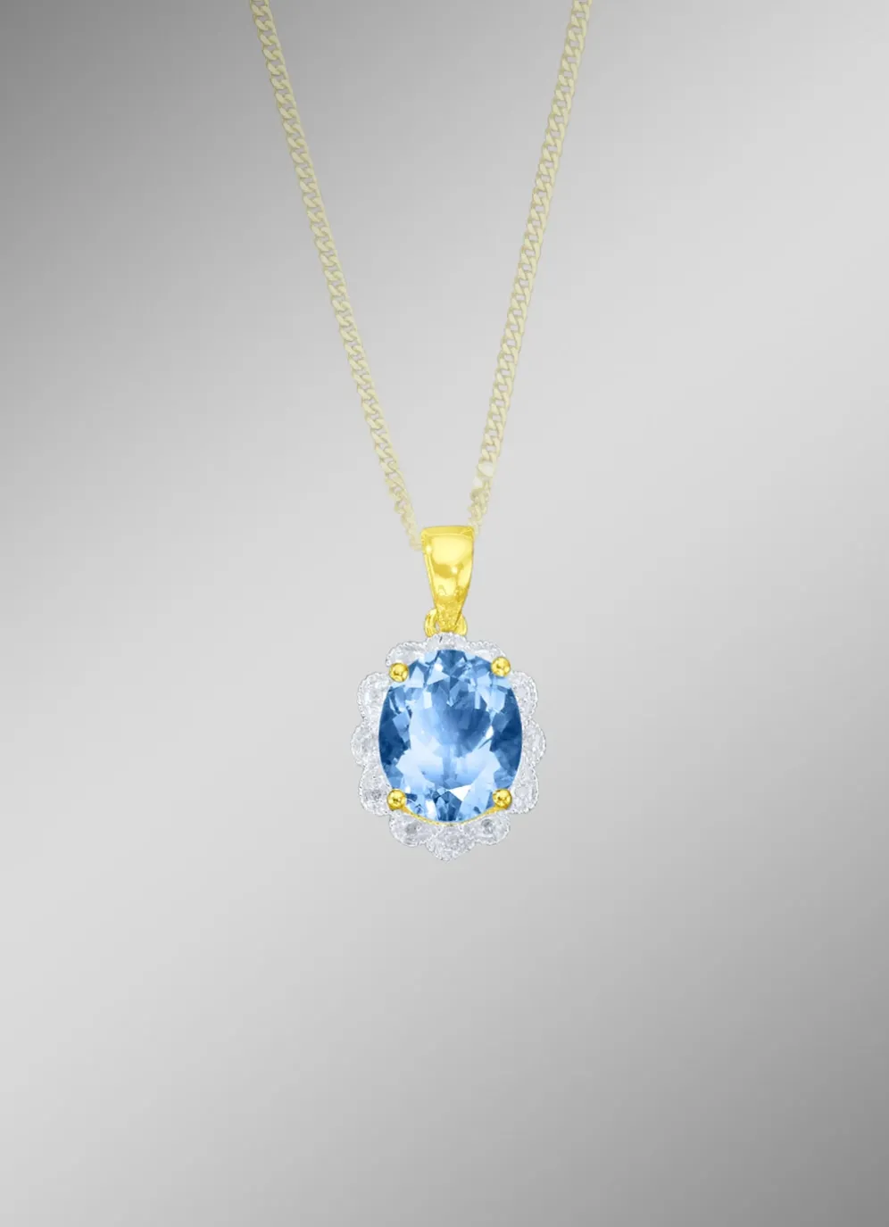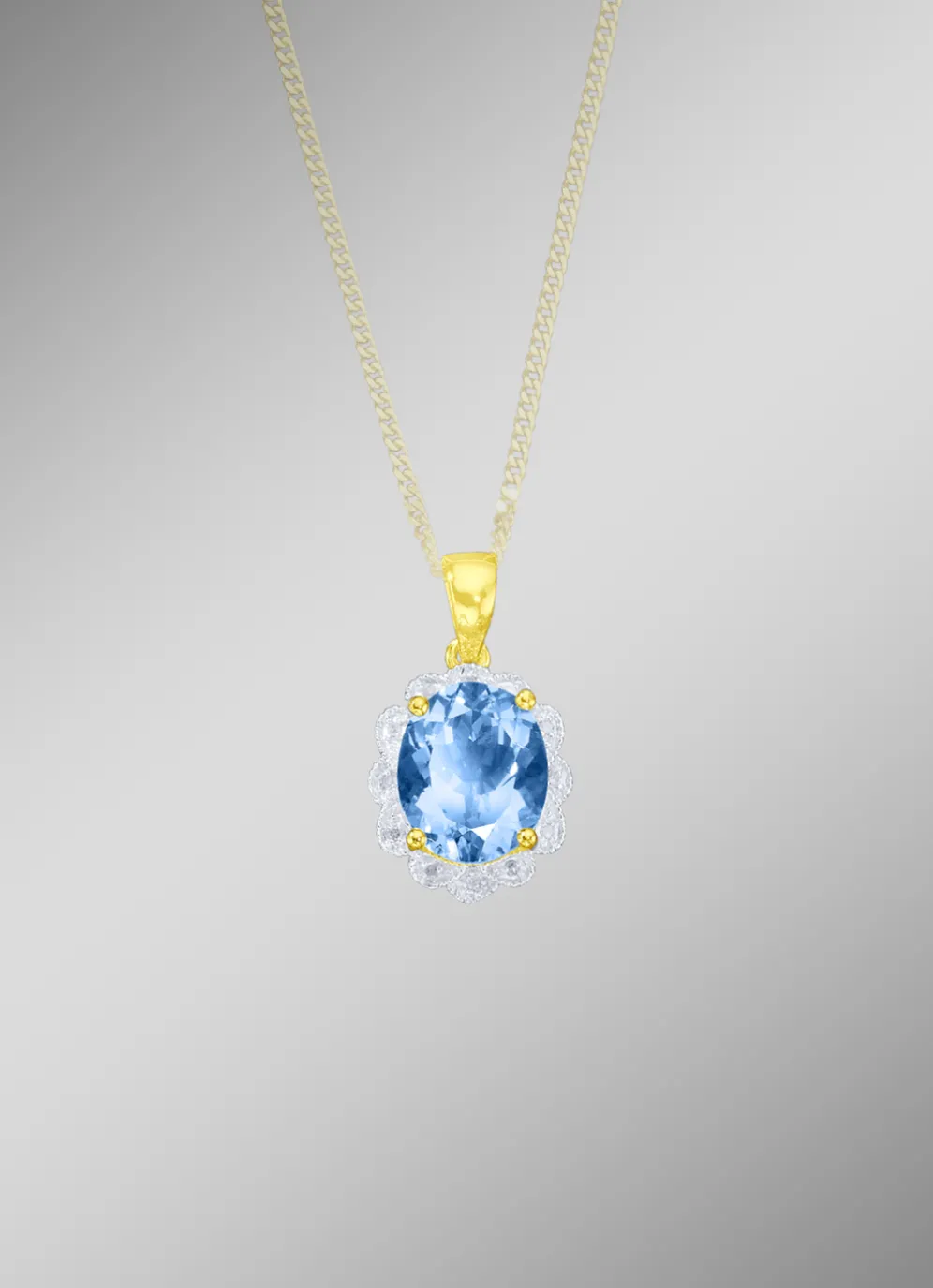 Massiver Anhänger mit Blautopas und Diamanten in der Legierung Gold 585/- fein.