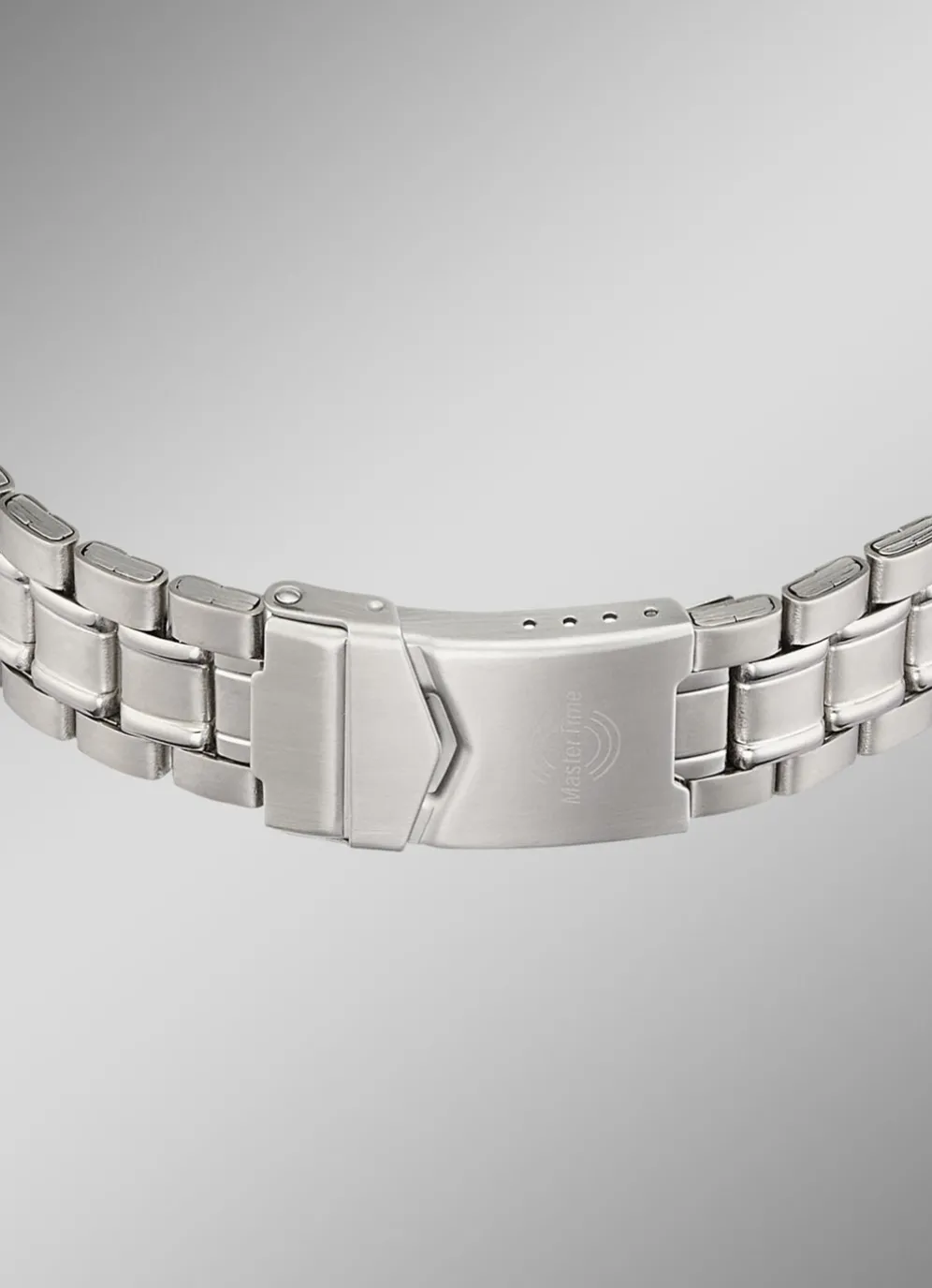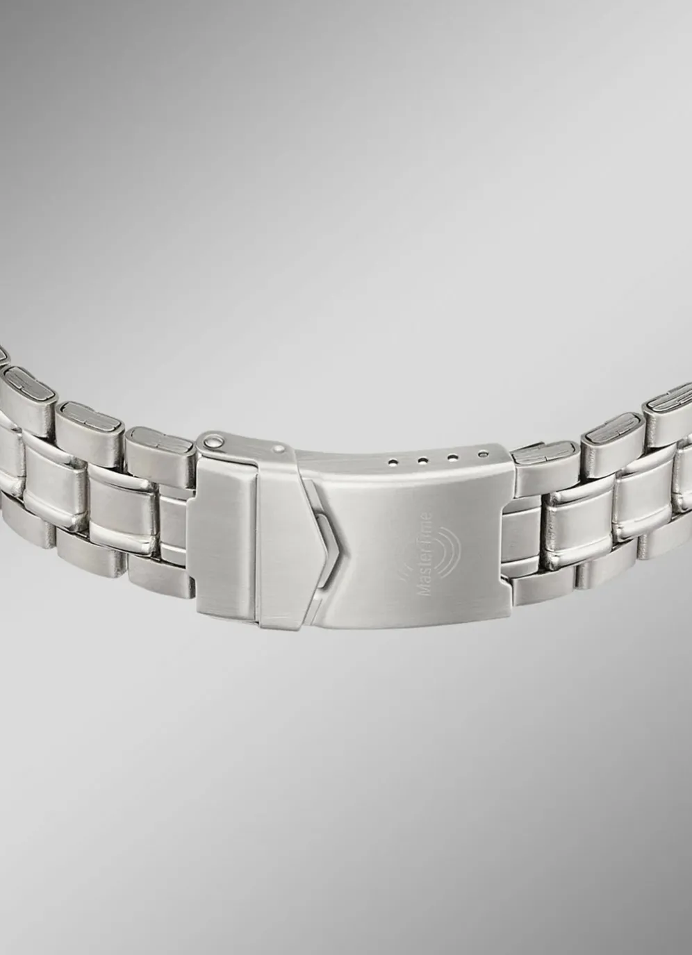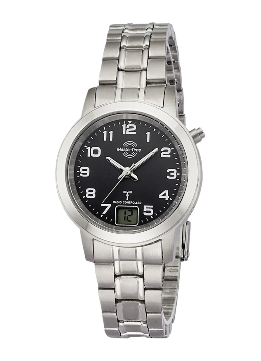 Sportliche Funk-Damenuhr aus Titan mit digitaler Tages- und Datumsanzeige. Die Damen Armbanduhr ermöglicht eine automatische Umstellung zwischen Sommer- und Winterzeit. Das schwarze Zifferblatt dieser Funkuhr ist gut ablesbar und mit Leuchtzeigern versehen. Das Material Titan ist leicht, extem widerstandsfähig und antiallergisch. Die Damenuhr ist 5 bar wasserdicht und hat einen Gehäusedurchmesser von 34 mm.