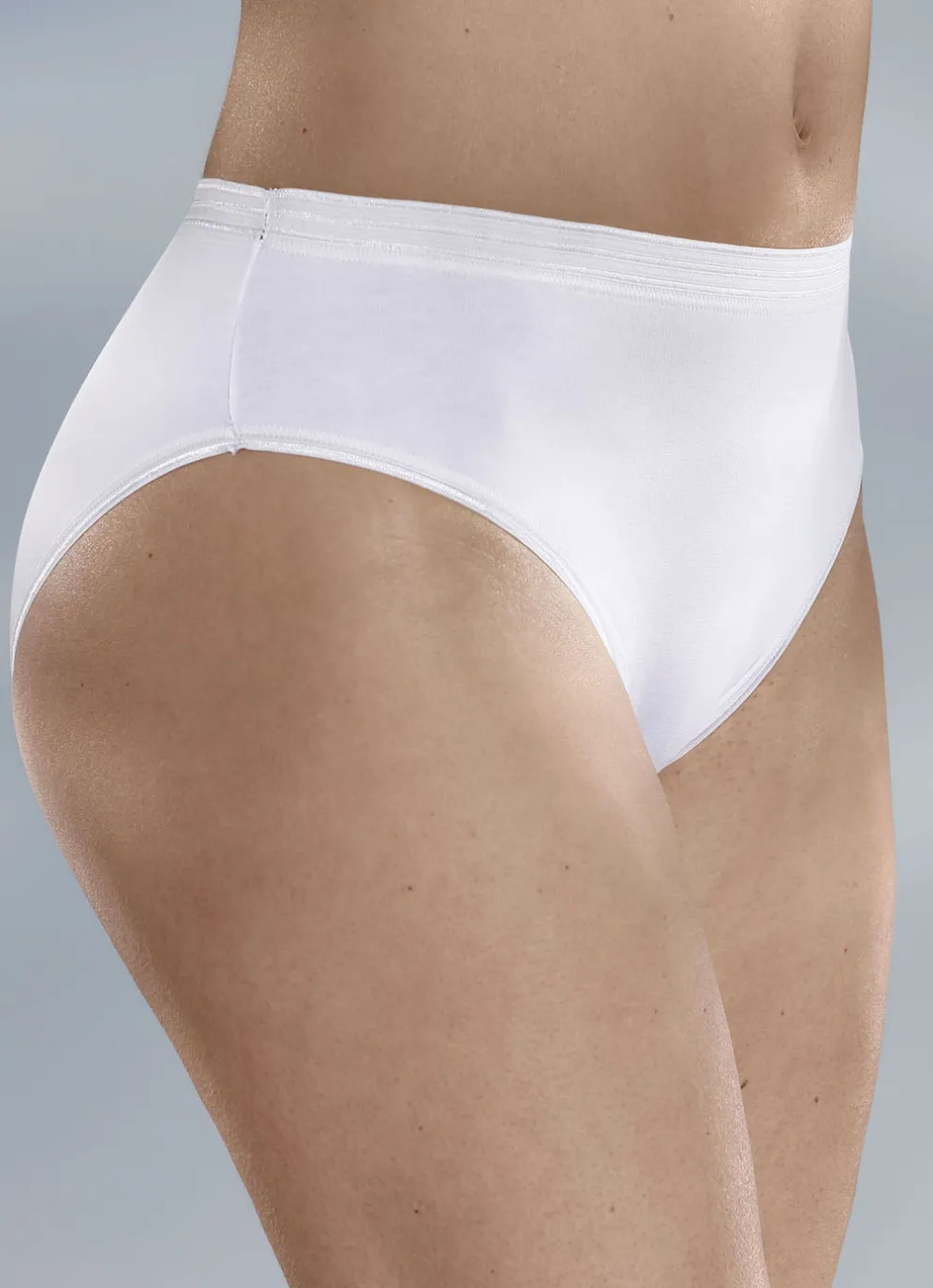 Mehrfackpack Slips mit glänzenden Abschlüssen in der Ausführung Fünferpack Slips, in Weiss sowie in Größe 36.