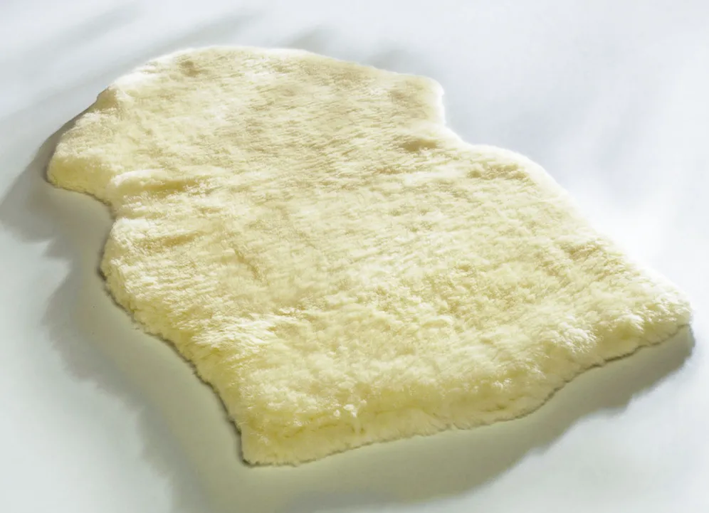 Merino-Lammfell-Serie von Kaiser aus reinem Naturlammfell in Größe 110 (Kissen, 1 Fellseite 20×40 cm) und in Natur.