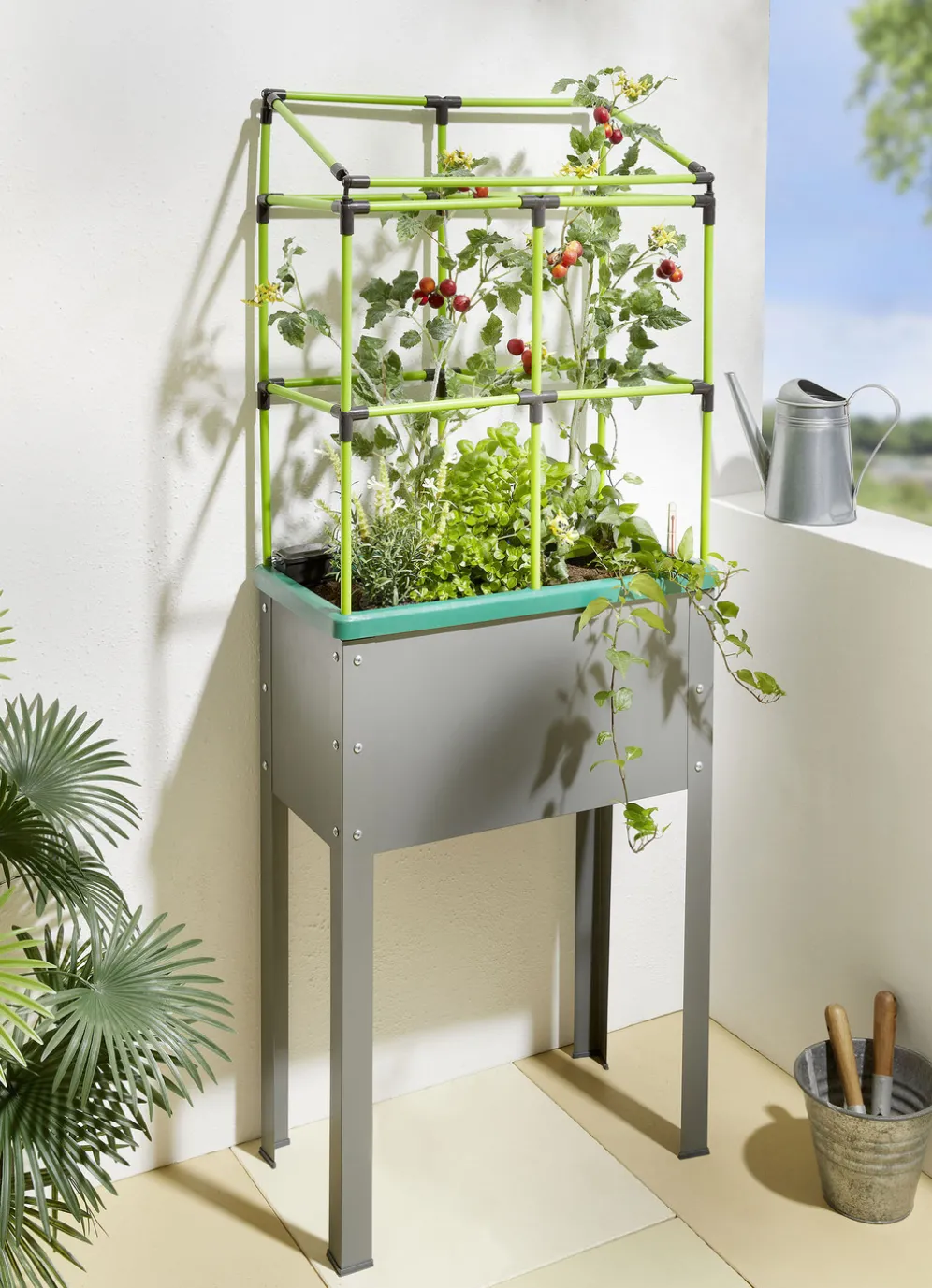 Sollten die grünen Mitbewohner ranken und klettern – kein Problem! Das dazugehörige, passende Rankgitter ist gleich montiert. Kübelvolumen 43 Liter. Hochbeet aus Metall, Rankgitter aus Polypropylen. Mit Aufbau-Anleitung. Maße: B62xH137xT33 cm; Höhe mit Rankgitter 161 cm