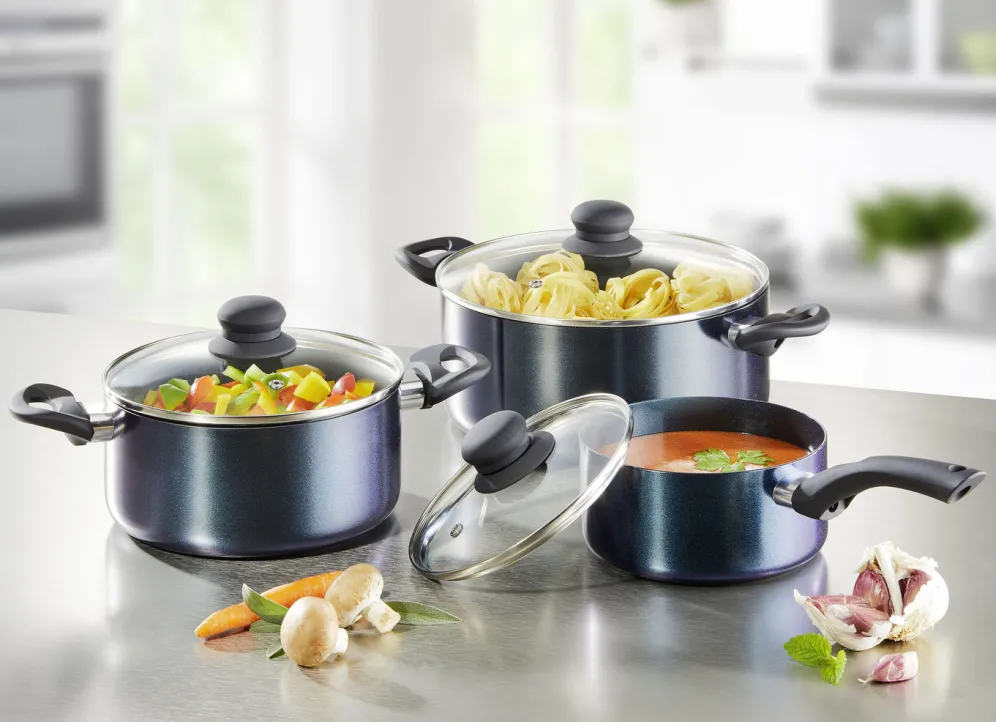 Meteor 6-teiliges Topf-Set mit Diamant-Keramik-Antihaft-Premiumbeschichtung in Blau.